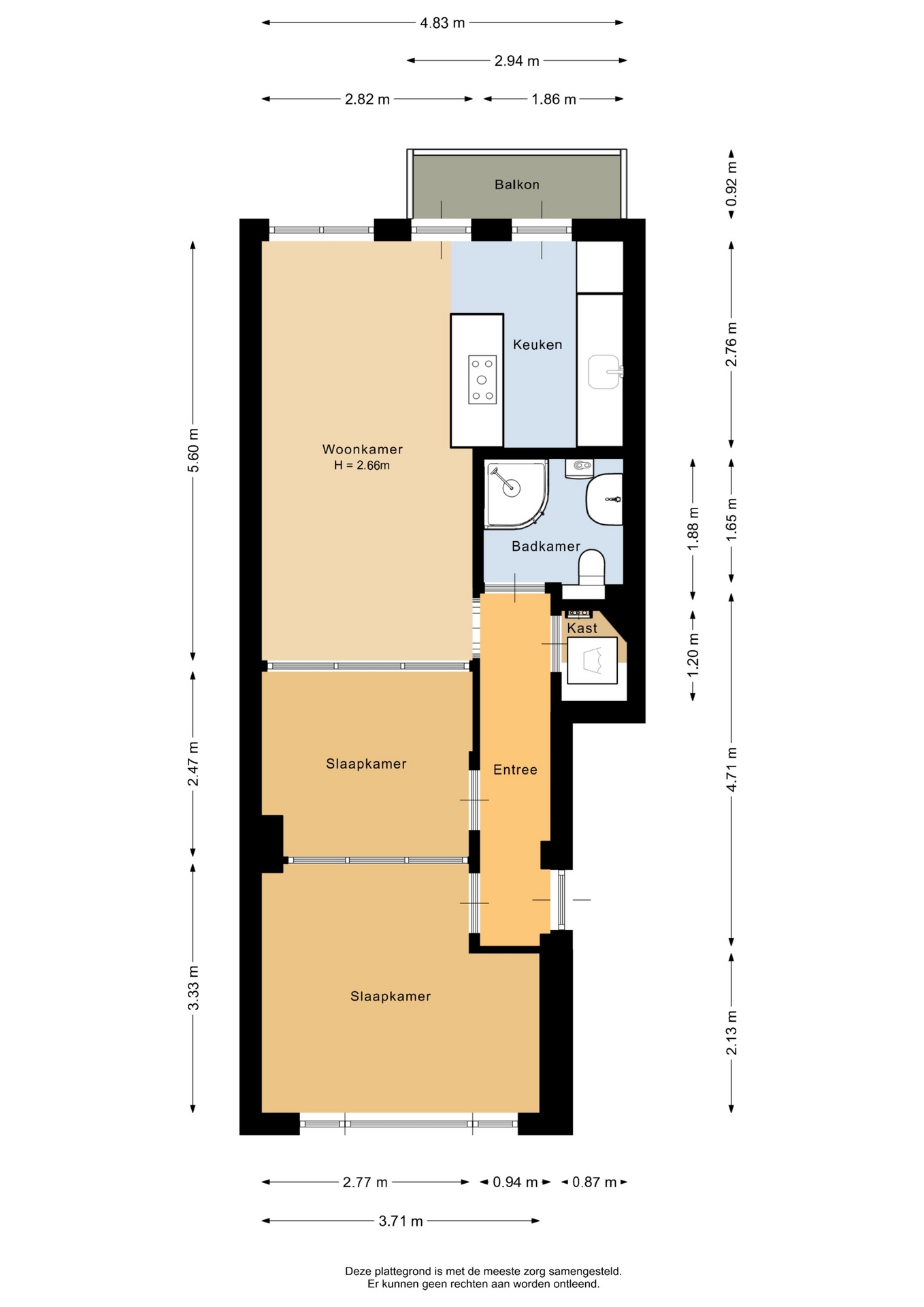 “Deze informatie is door ons met de nodige zorgvuldigheid samengesteld. Onzerzijds wordt echter geen enkele aansprakelijkheid aanvaard voor enige onvolledigheid, onjuistheid of anderszins, dan wel de gevolgen daarvan. Alle opgegeven maten en oppervlakten zijn indicatief.”