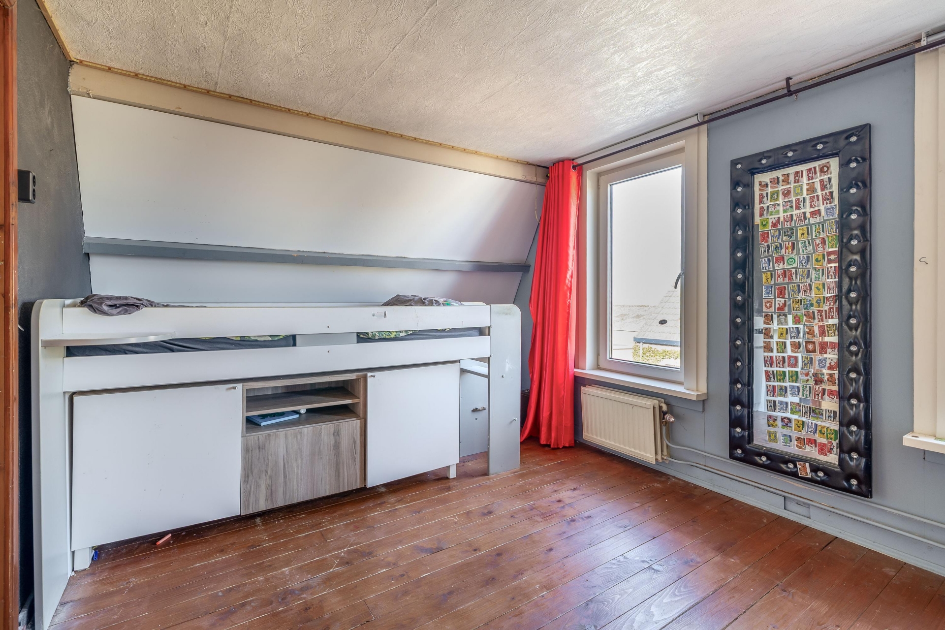 Een van de leuke aspecten van dit huis is de speelse indeling over meerdere woonlagen. Via de trap kom je op de verdieping waar zich twee ruime slaapkamers bevinden. Door de rechte gevels zijn de kamers goed in te delen en bieden ze voldoende ruimte voor een groot bed en kastruimte. De badkamer ligt eveneens op deze verdieping en is voorzien van een douche, toilet en wastafel.