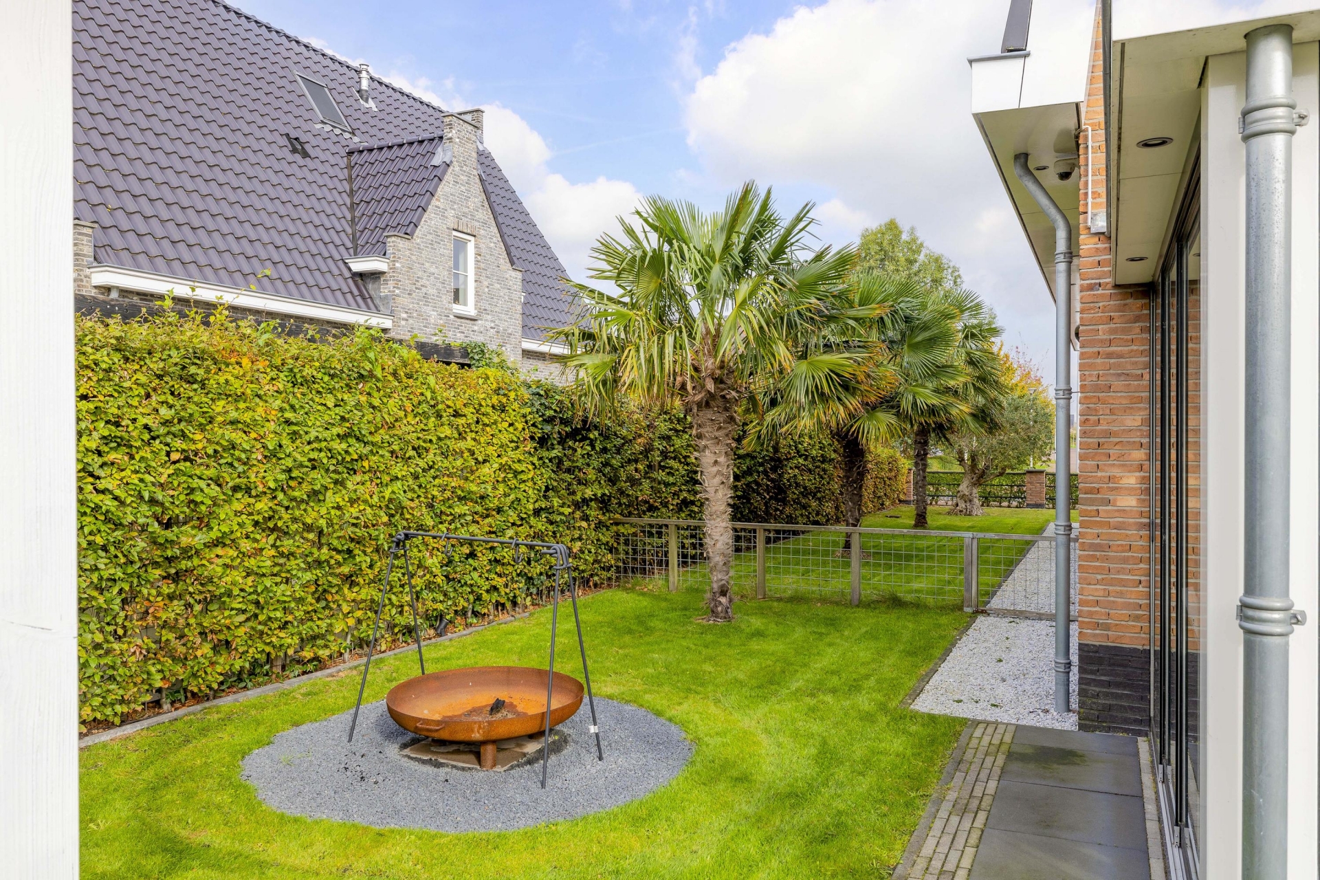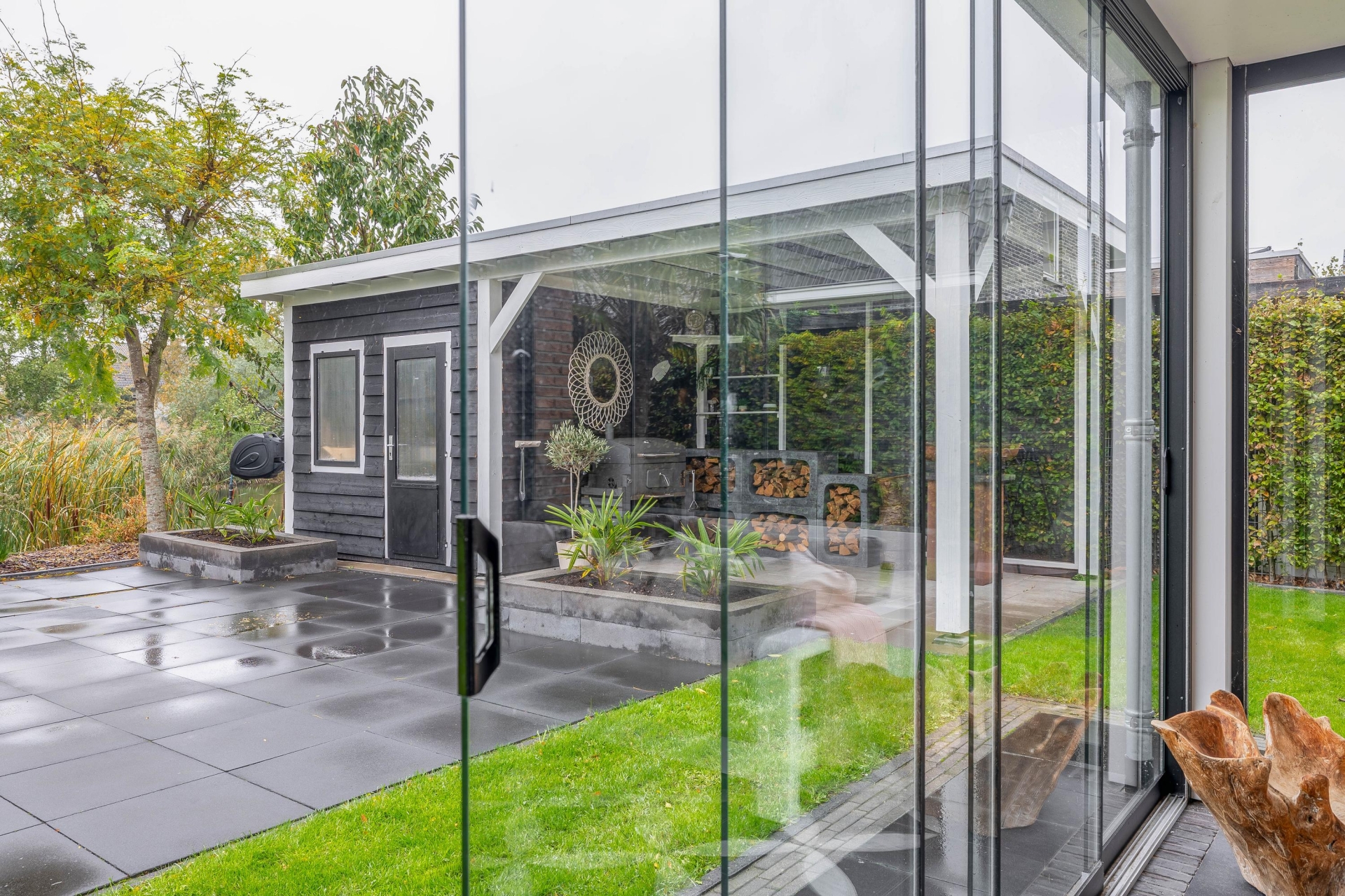 Buiten is het minstens zo indrukwekkend als binnen. De tuin ligt rondom het huis en is met zorg ontworpen. Aan de achterzijde geniet je van volledige privacy, een zuidwestelijke ligging en directe ligging aan een waterpartij. De houten vlonder is dé plek voor een borrel bij zonsondergang of een goed boek in alle rust. De serre vormt het verlengstuk van deze tuinbeleving en maakt buitenleven mogelijk in elk seizoen. Daarnaast is er nog een buitenberging aanwezig met een sfeervolle veranda.