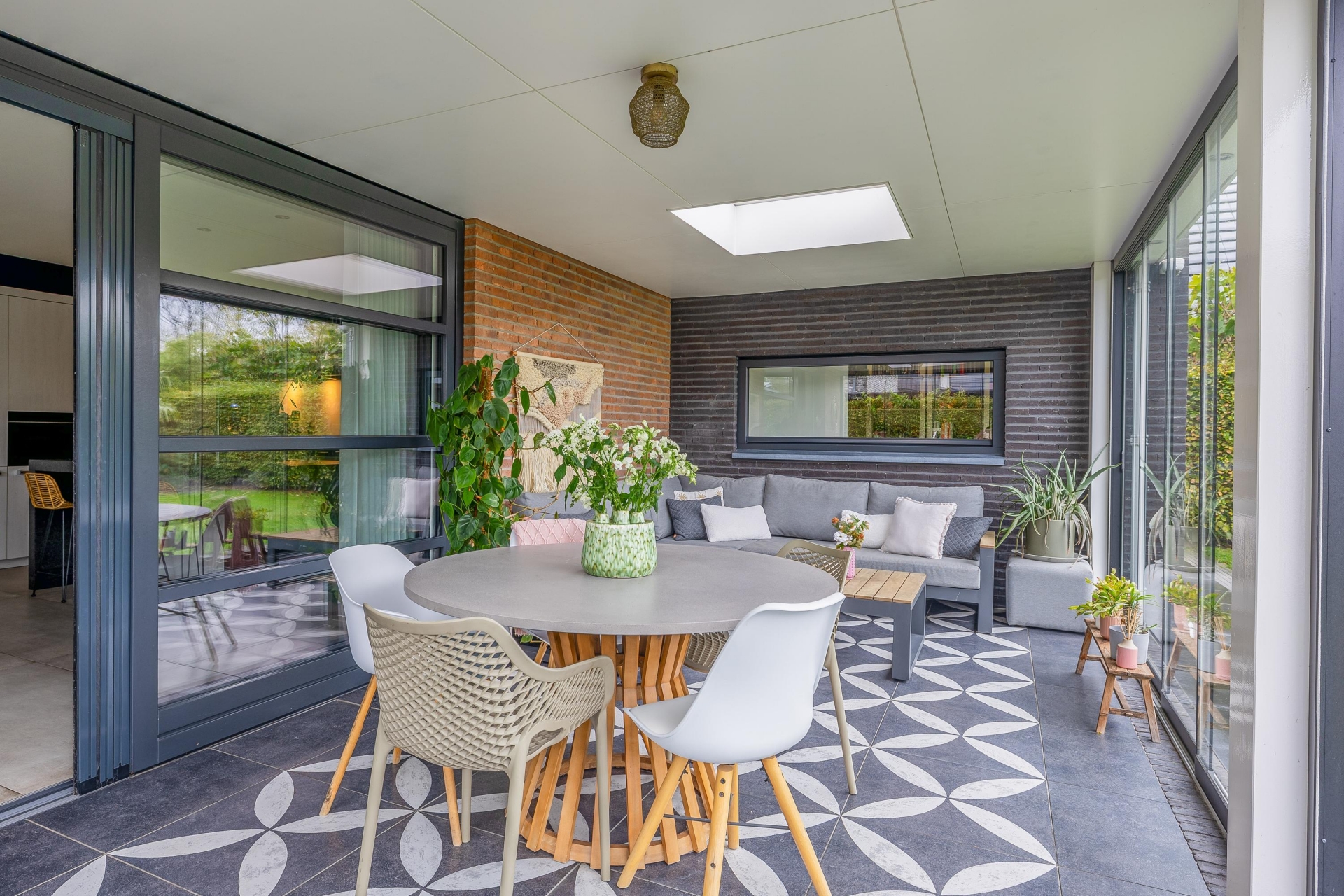 - Serre met glazen schuifwanden, kan helemaal open, twee daklichten;