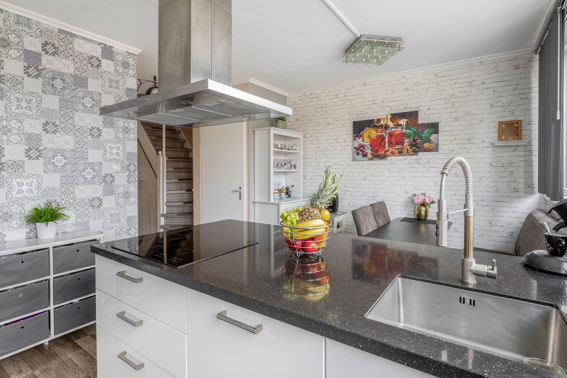Deze woning is altijd met zorg onderhouden, wat direct merkbaar is bij binnenkomst. De woonkamer is door een extra open indeling bijzonder ruim en uitnodigend en op een maat gemaakte kast onder de trap voor extra veel bergruimte. Aan de achterzijde van de woning bevindt zich de riante woonkeuken met kookeiland en moderne apparatuur, waaronder een oven, combi-oven, afzuigkap, inductiekookplaat, vaatwasser, koelkast en vriezer.