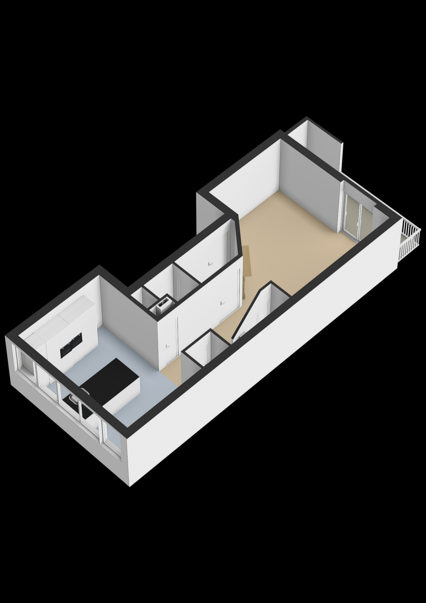 Ruime, moderne 3-kamerwoning met zeer zonnig balkon op het zuiden, stijlvolle keuken, nette badkamer en eigen parkeerplaats aan de Floris Burgwal.