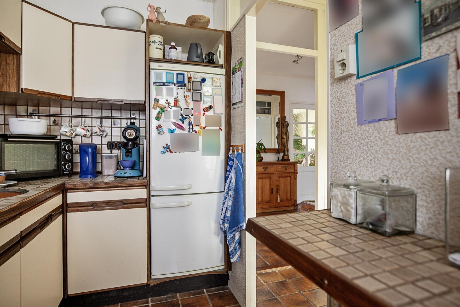 Entree/hal met meterkast en toegang tot de keuken. De keuken is in een rechte opstelling en voorzien van een koel-vriescombinatie, 4-pits gaskookplaat en er is ruimte voor een wasmachine. Oven en Afzuigkap zijn niet meer bruikbaar.