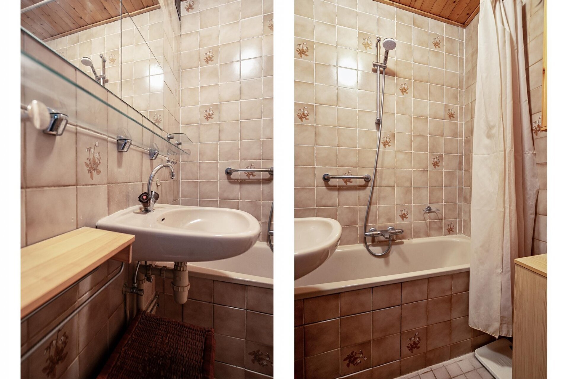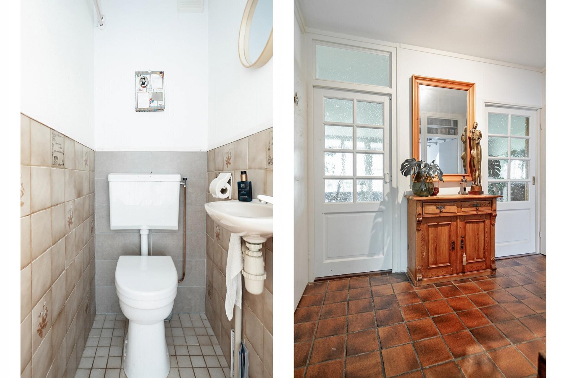 Ruime tussenhal met berging/kastruimte en toegang tot alle vertrekken. Separaat toilet met fonteintje. De volledig betegelde badkamer is uitgerust met een ligbad met douche, wastafel en spiegelkasten.