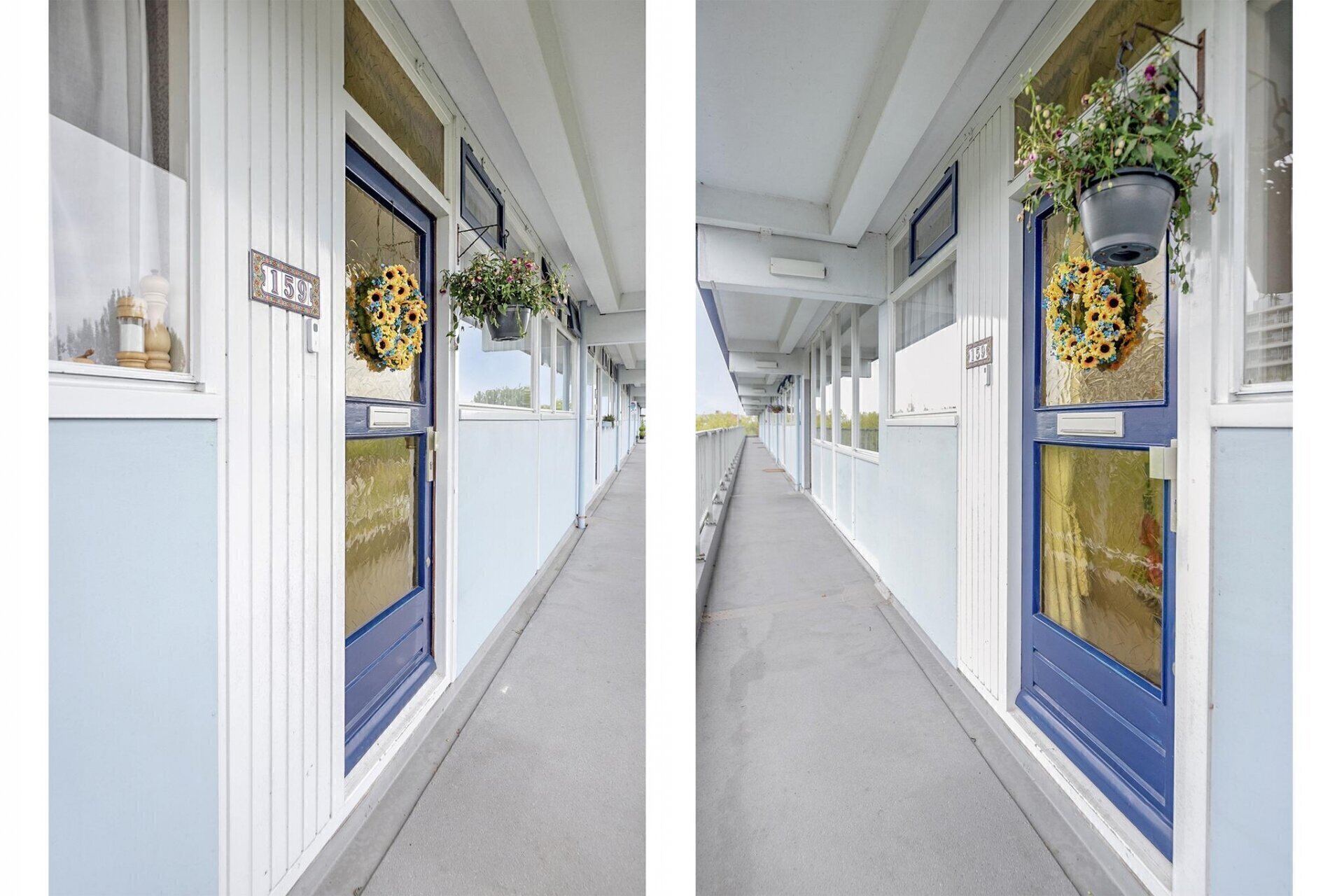 In de centrale hal, waar de lift uitkomt, bevinden zich de brievenbussen. Het appartement bevindt zich als eerst op de galerij naast de lift.