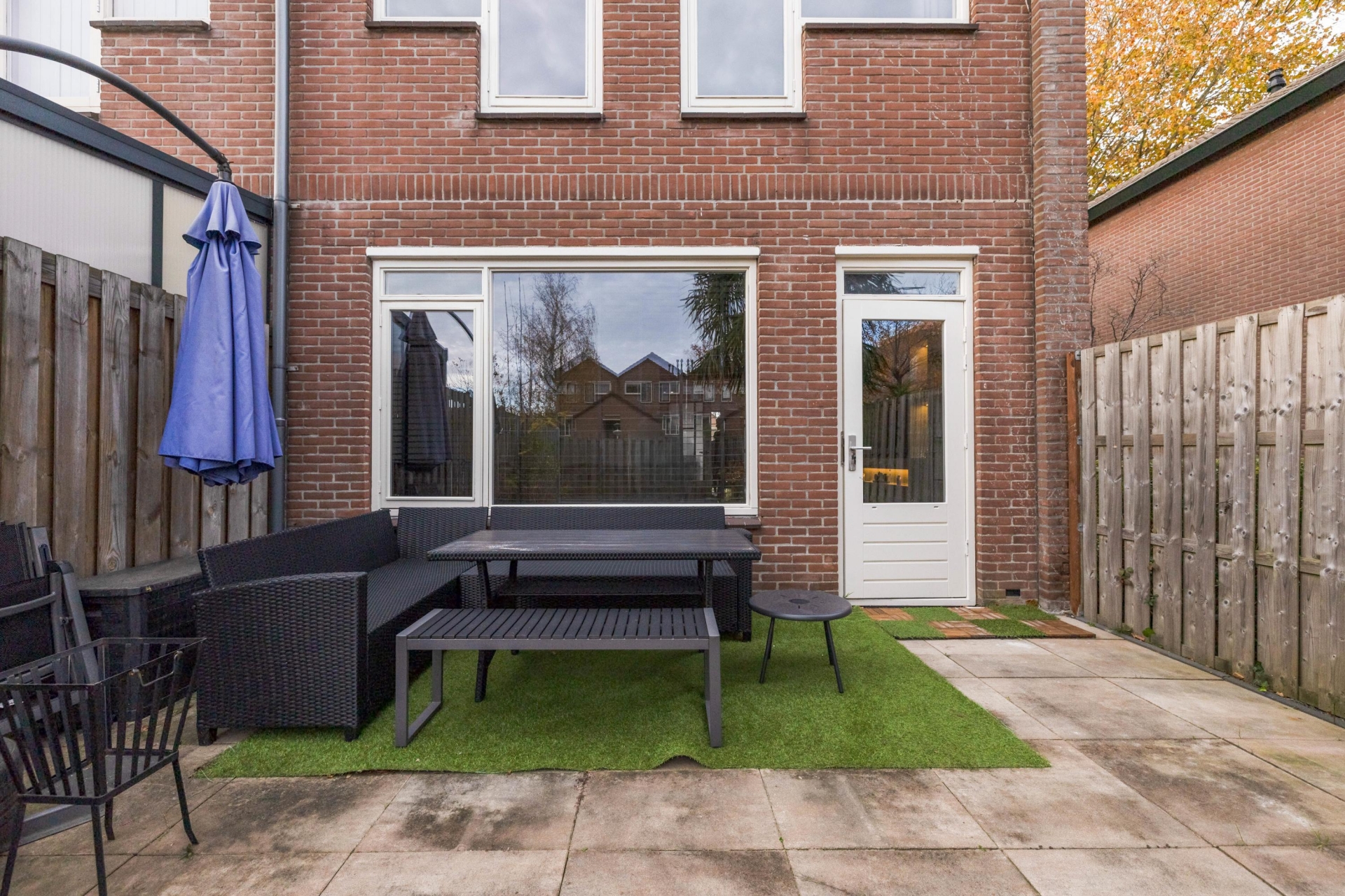 De achtertuin is een fijne plek waar je tot in de avond van de zon kunt genieten, dankzij de ligging op het noordwesten. De tuin is lekker diep en daarmee ideaal voor kinderen om te spelen of om gezellig met vrienden te barbecueën. In de voortuin vind je een stenen berging voor je fietsen en gereedschap, praktisch als je met de fiets thuiskomt.