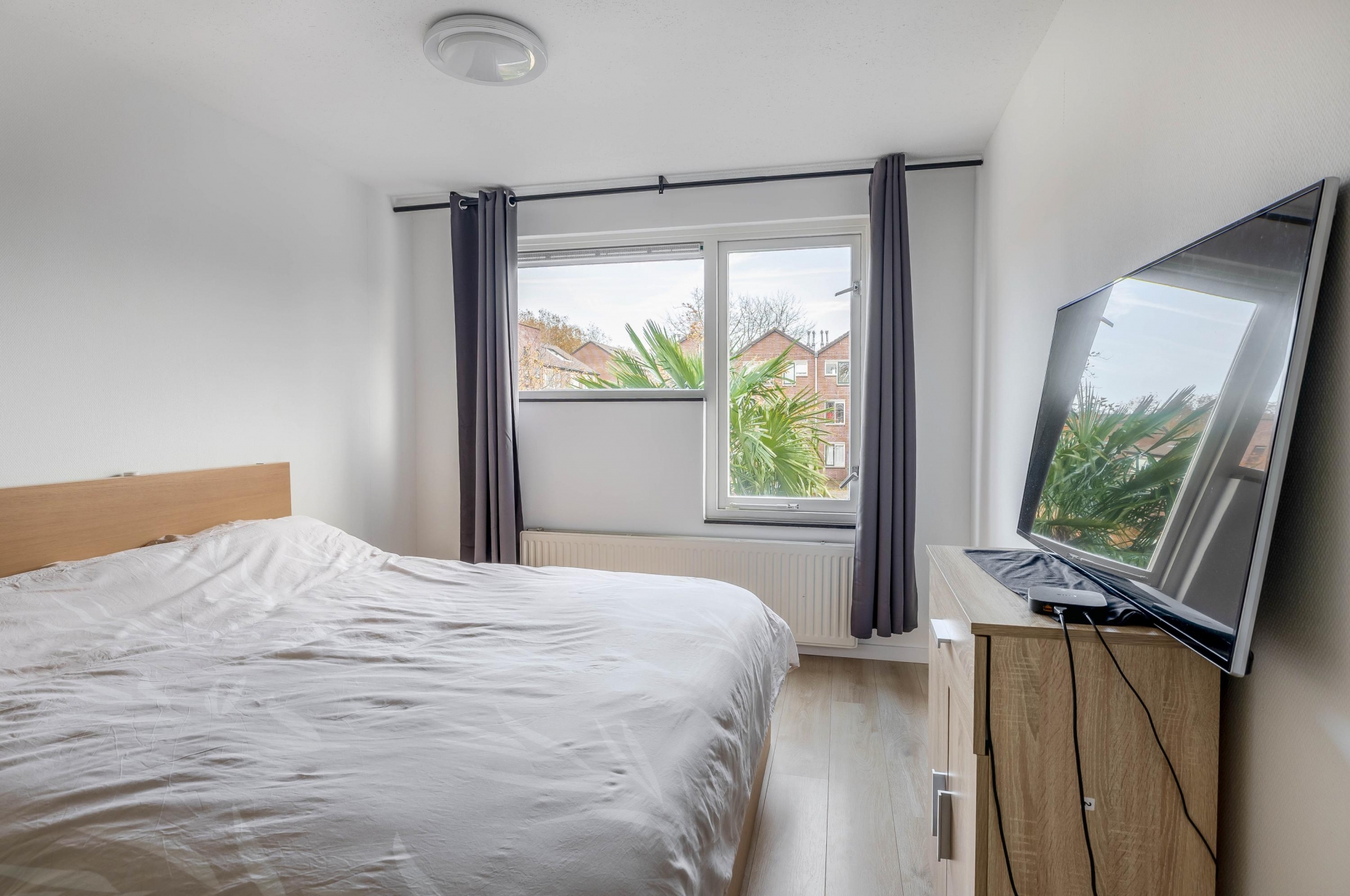 Op de eerste verdieping vind je vier volwaardige slaapkamers. De grootste slaapkamer ligt aan de achterzijde en biedt uitzicht op de tuin. De recent vernieuwde badkamer is stijlvol betegeld in een moderne marmerlook en voorzien van een dubbele wastafel, inloopdouche met regendouche en designradiator. Alles voelt hier fris en luxe aan.
