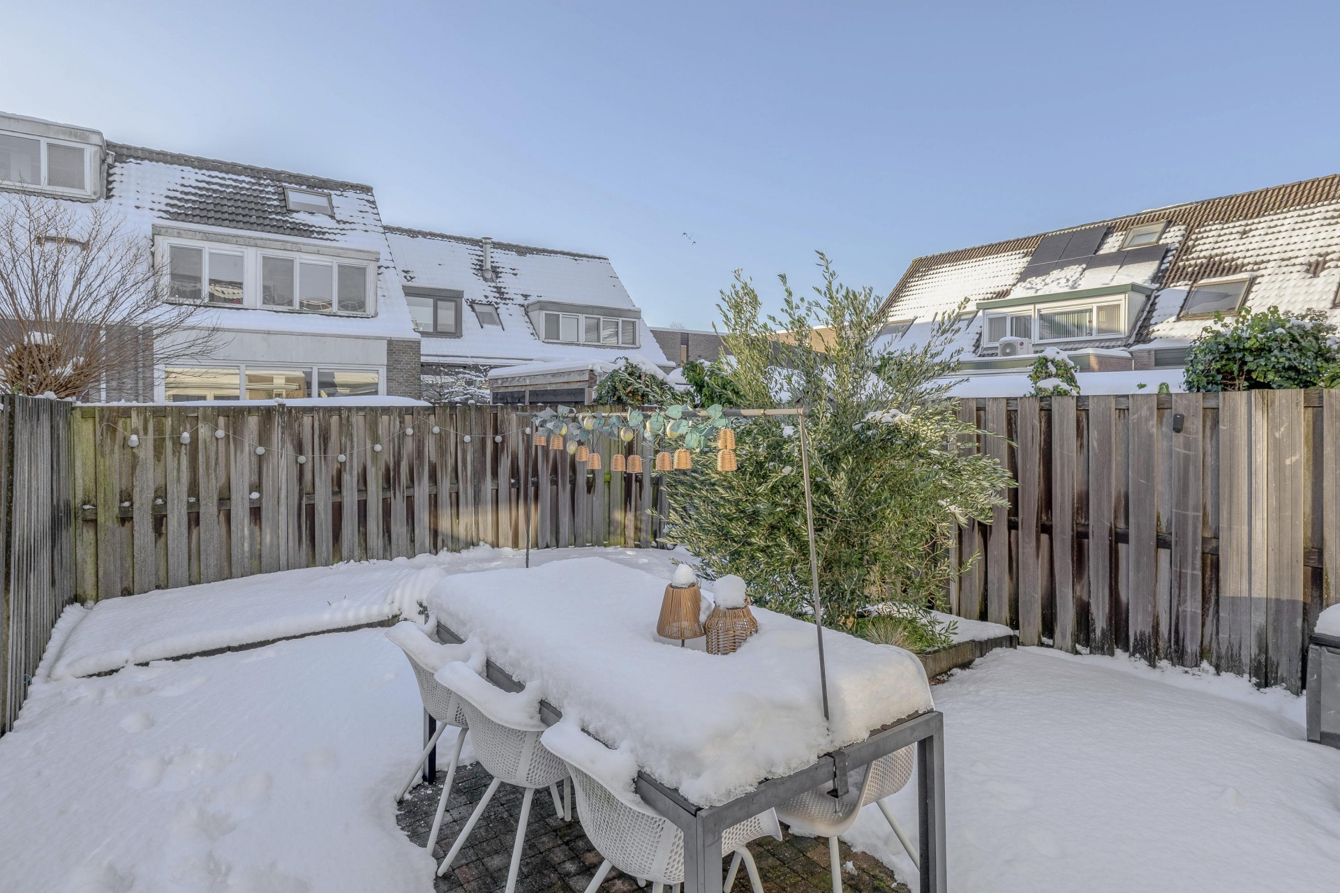 Via de schuifpui bereikt u de zonnige achtertuin. In de tuin bevindt zich de airconditioningunit ten behoeve van de woonkamer. De ruime achtertuin van ca. 53 m² is gelegen op het zuidwesten en beschikt over een achterom.
