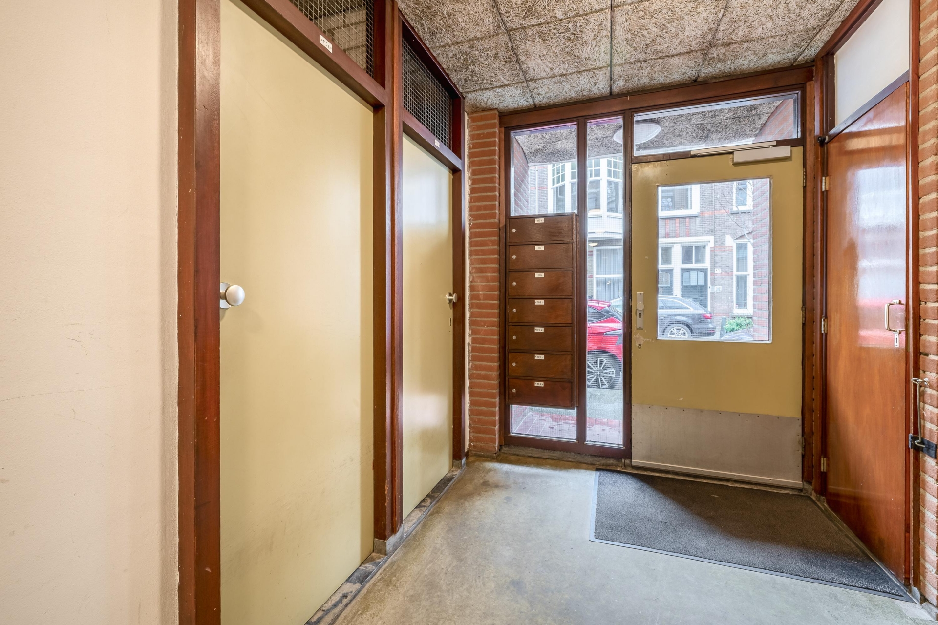 Entree via gesloten portiek met brievenbussen en bellentableau. Trap naar de derde etage. Entree van het appartement via hal met meterkast en toilet; badkamer, voorzien van inloopdouche, wastafel, kast met opstelplaats c.v.-ketel en wasmachineaansluiting; ruime L-vormige woonkamer met (half) open keuken, voorzien van oven, kookplaat, afzuigkap en koel-/vriescombinatie; zeer rustige achterslaapkamer met toegang tot het zonnige balkon op het Zuidoosten; separate (fietsen-)berging op de begane grond.