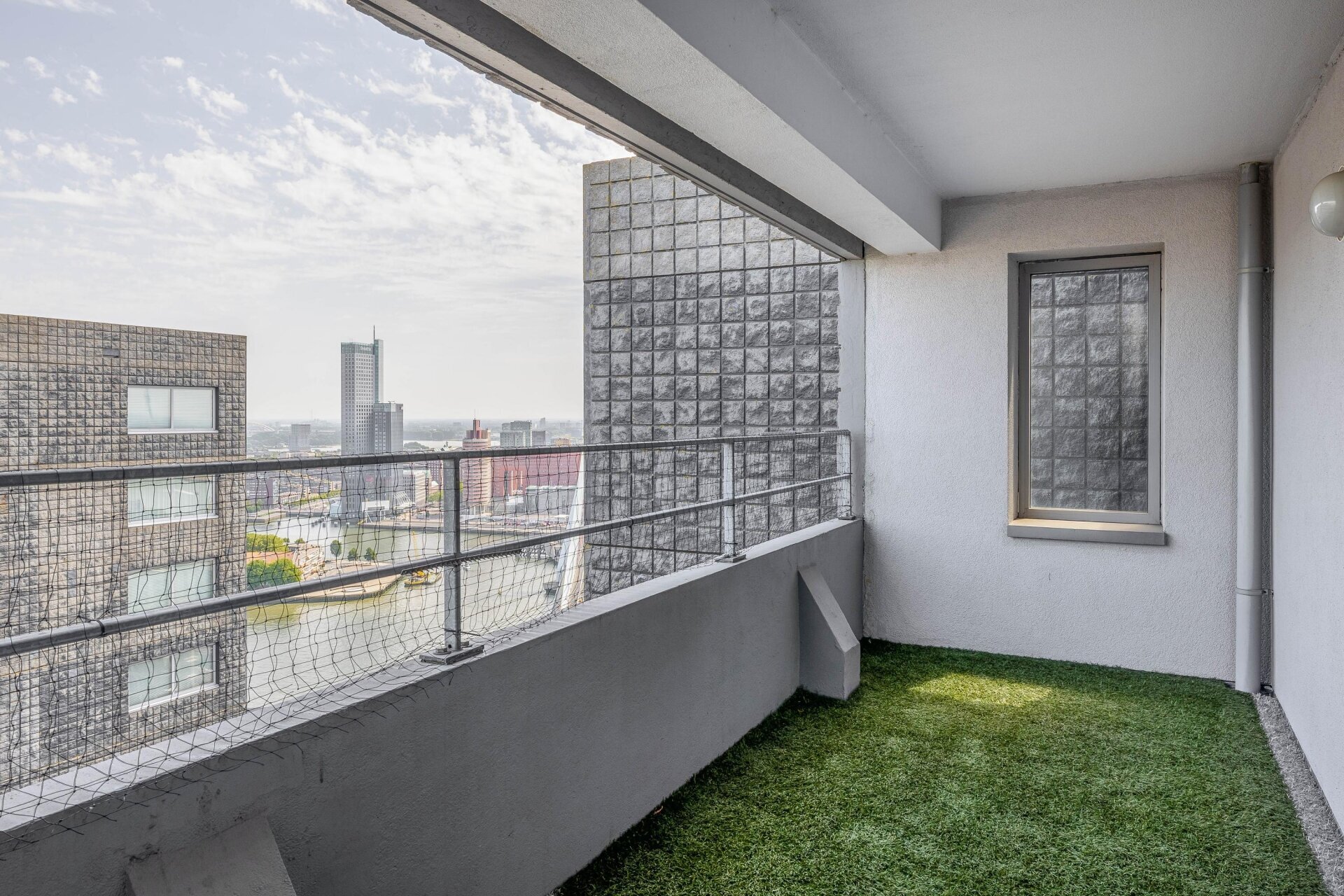Elke dag genieten van een spectaculair uitzicht over de Leuvehaven, het Maritiem Museum en het stadscentrum. Vanaf het ruime balkon kijkt u zelfs uit over de Maas, de Erasmusbrug en de Kop van Zuid. Dit maakt thuiskomen een belevenis op zich, met Rotterdam letterlijk aan uw voeten.