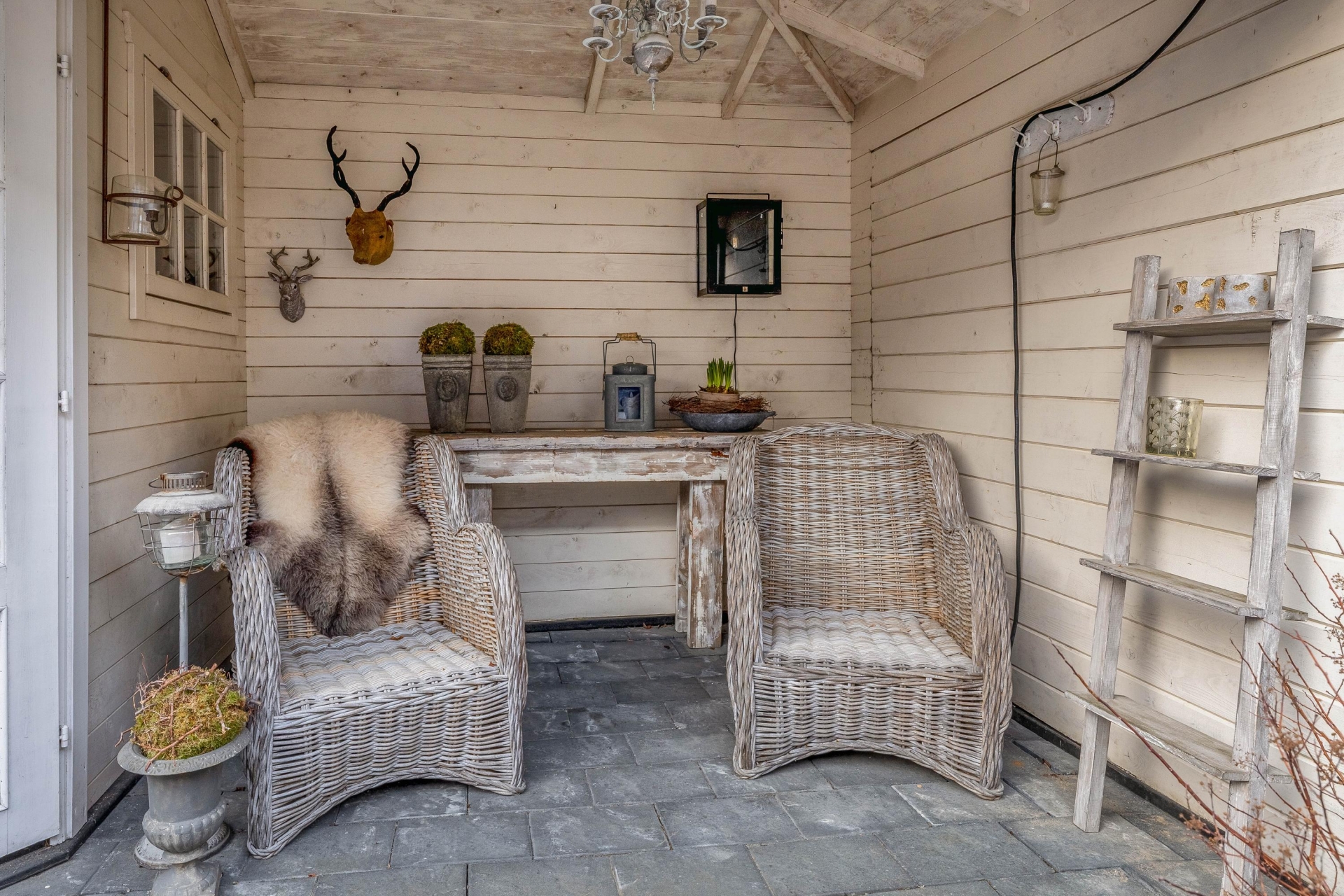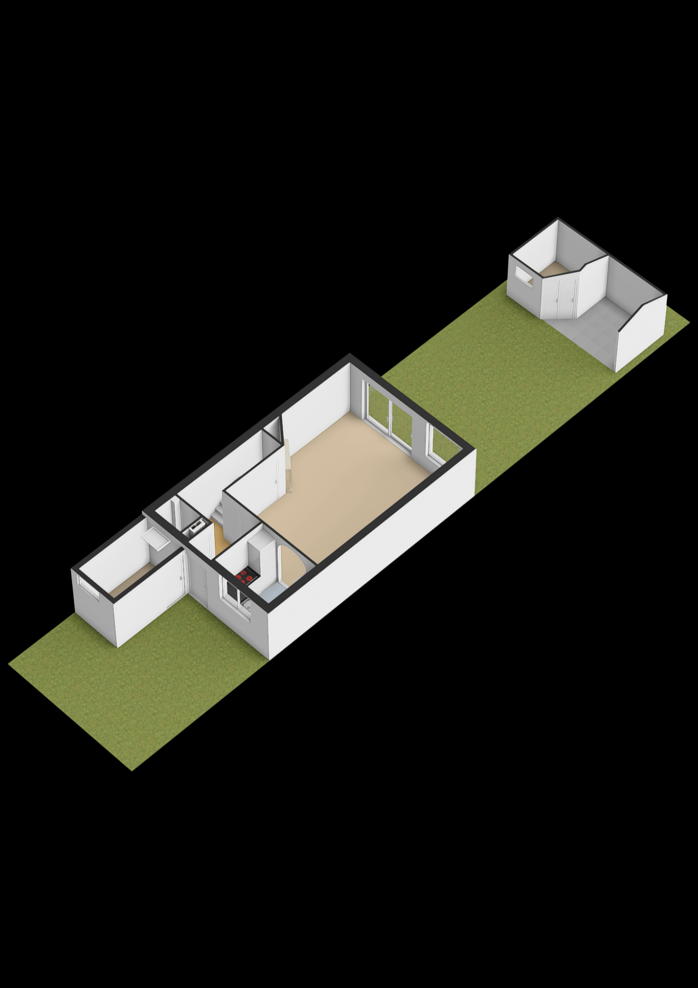- Stenen berging aan de voorzijde van de woning;