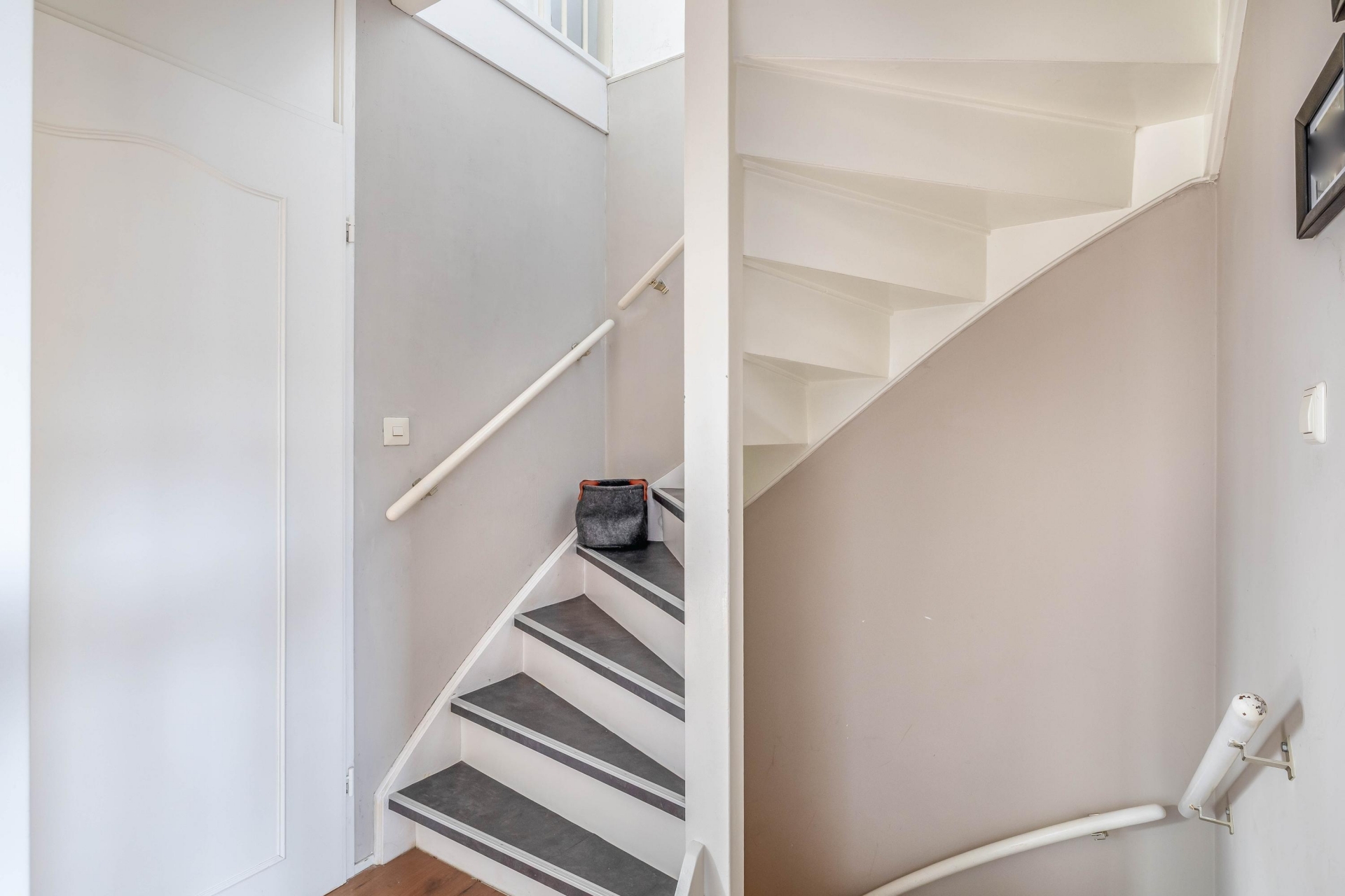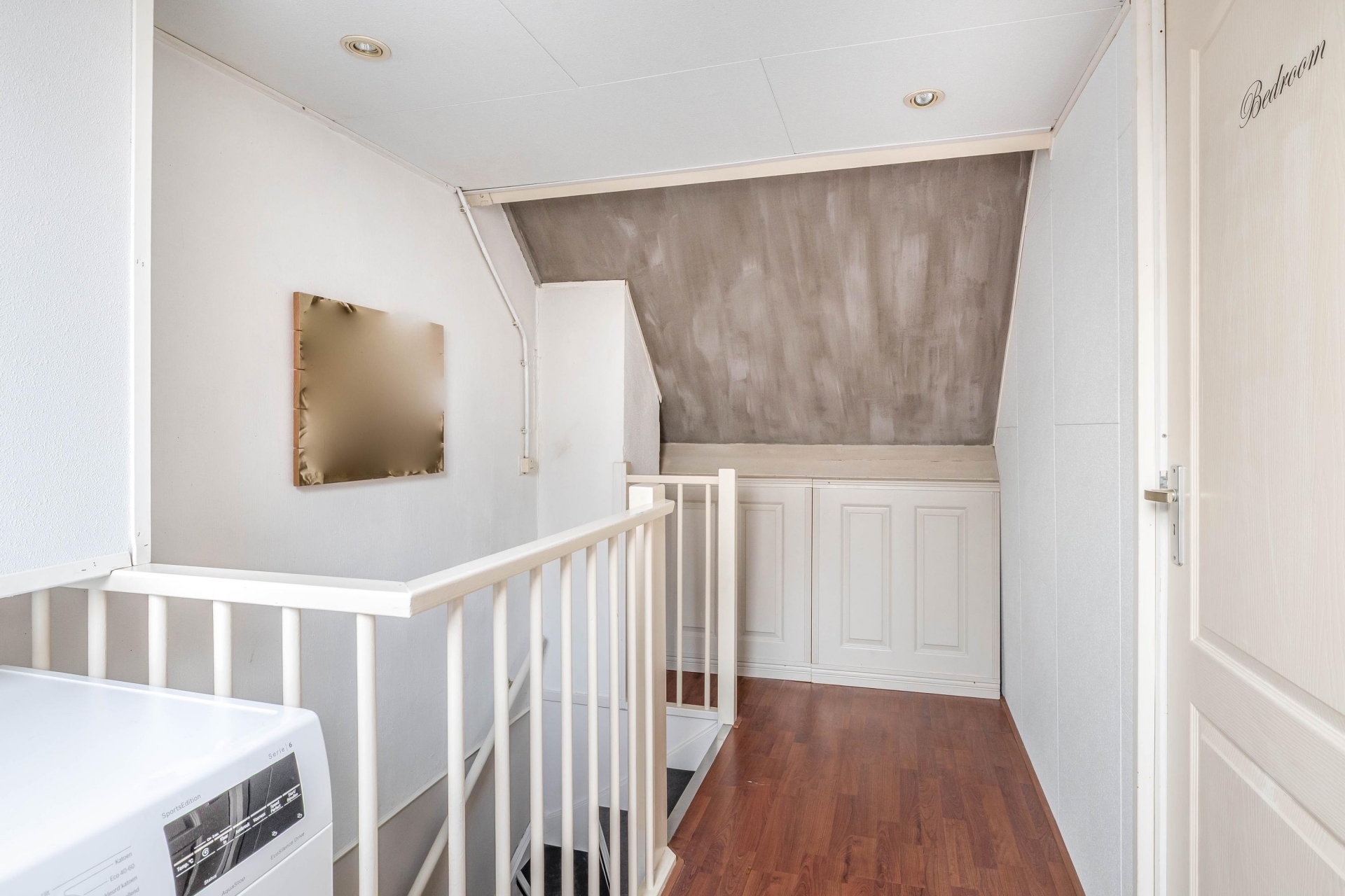 Op de eerste verdieping zijn 2 slaapkamers en de badkamer. De badkamer is volledig betegeld en voorzien van een douche, wastafel en een toilet. De master bedroom is gelegen aan de achterzijde. Oorspronkelijk waren dit 2 slaapkamers. Mocht u een kamer tekort? Het is mogelijk om dit weer te realiseren. Op de 2e verdieping is de ruime 3e slaapkamer gelegen. Deze ligt over de volledige breedte van de woning. Op de voorzolder is ruimte genoeg voor het plaatsen van de wasmachine en droger.