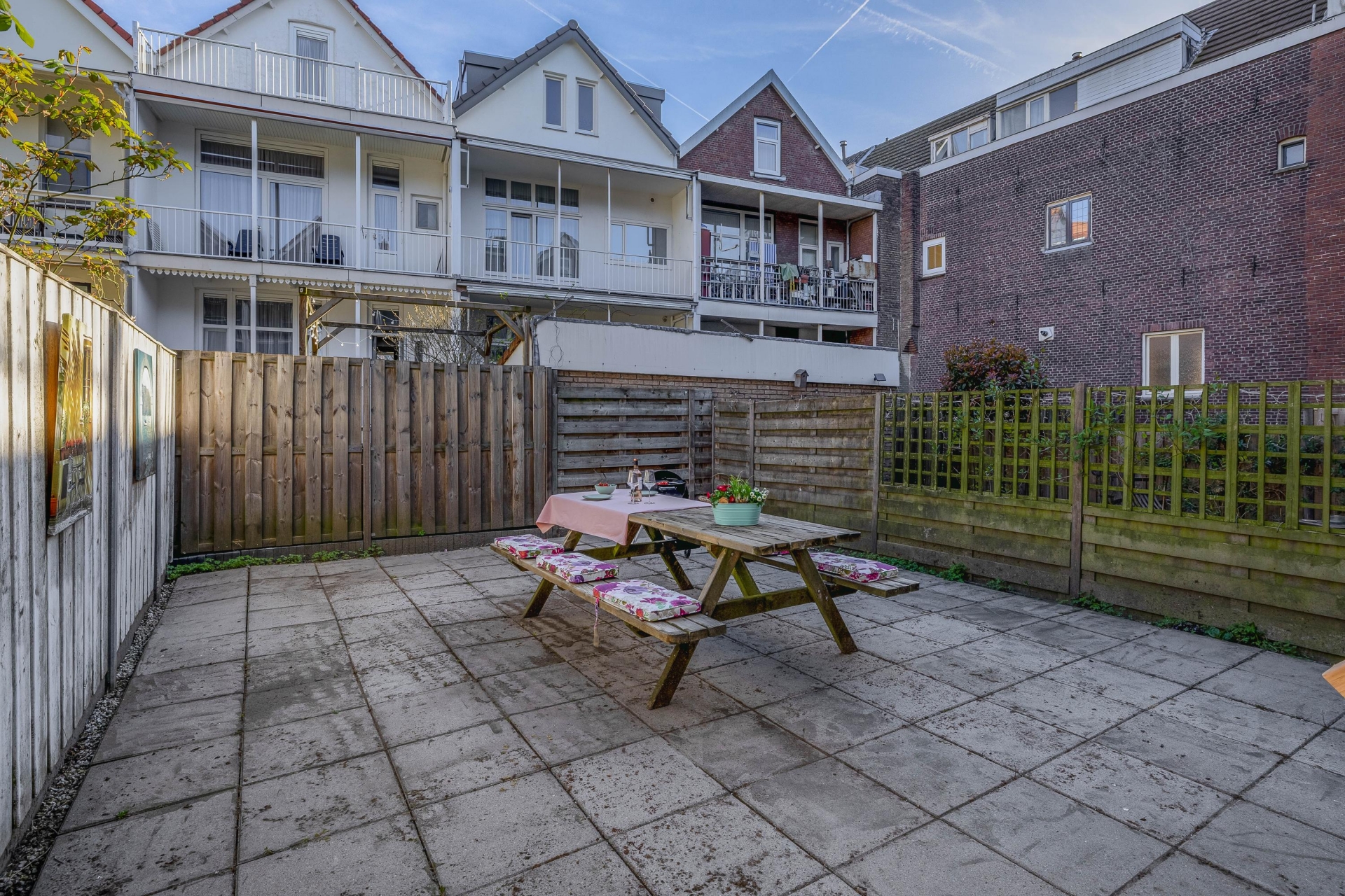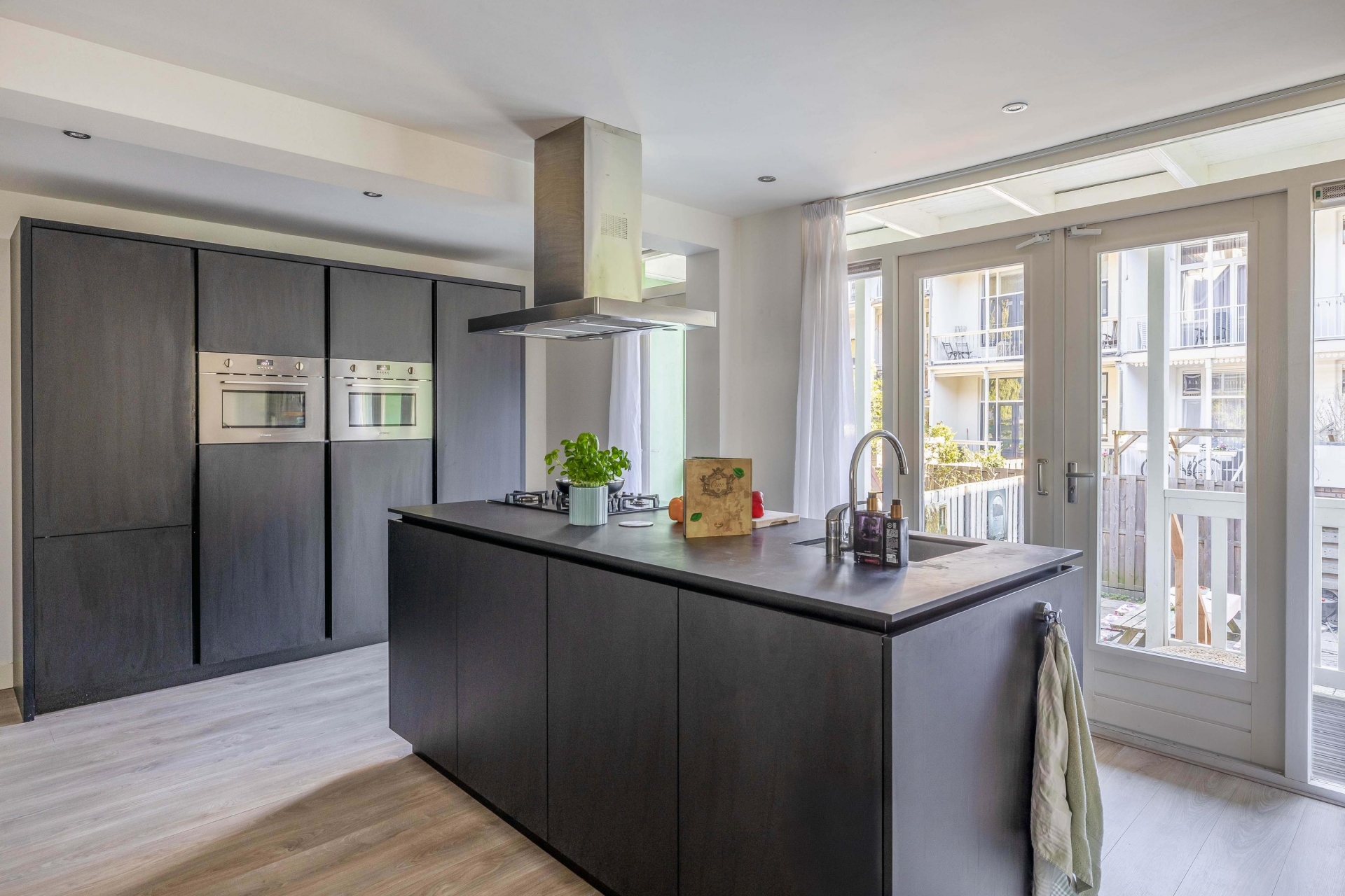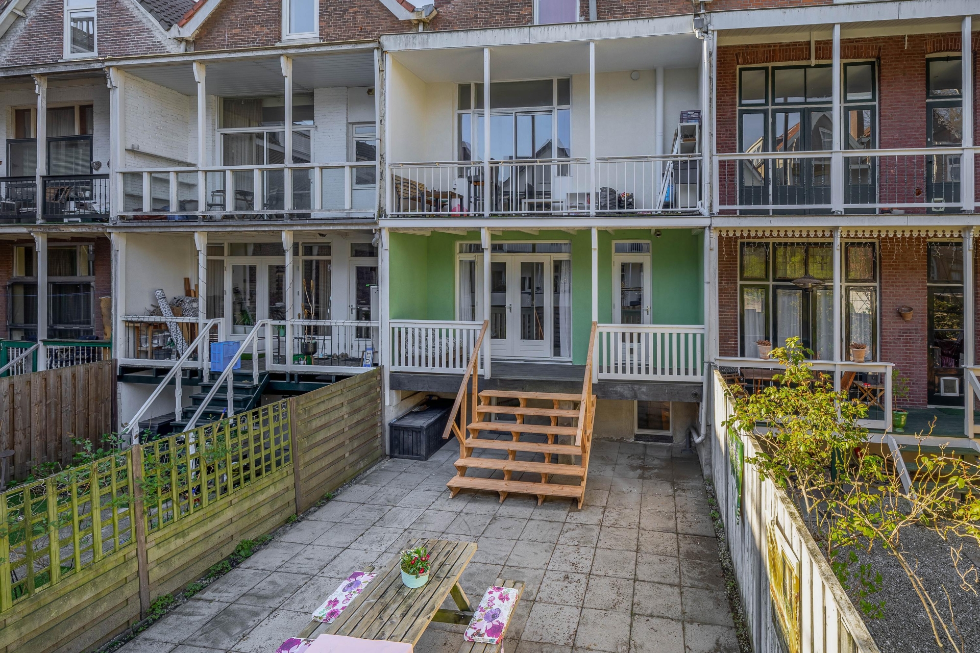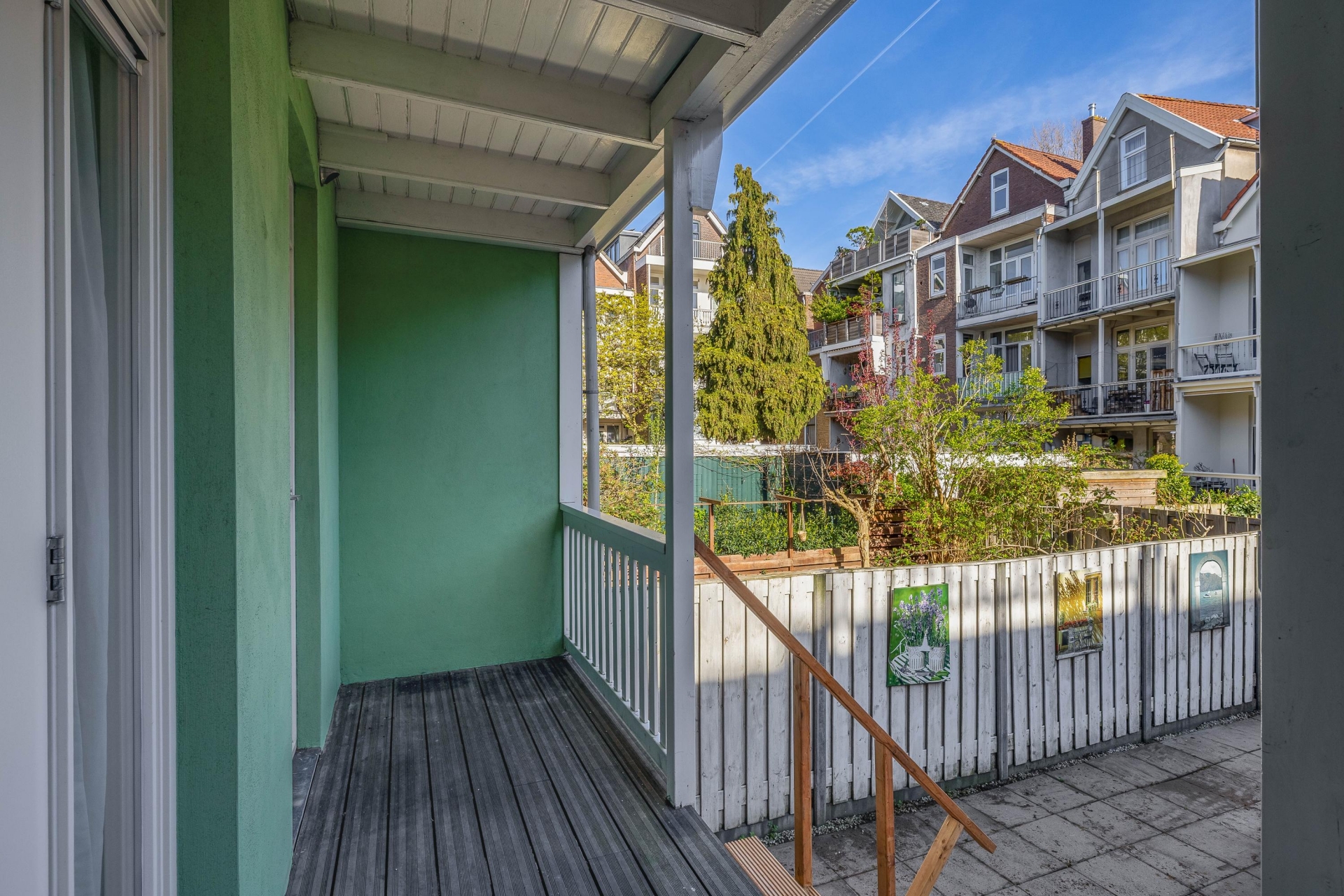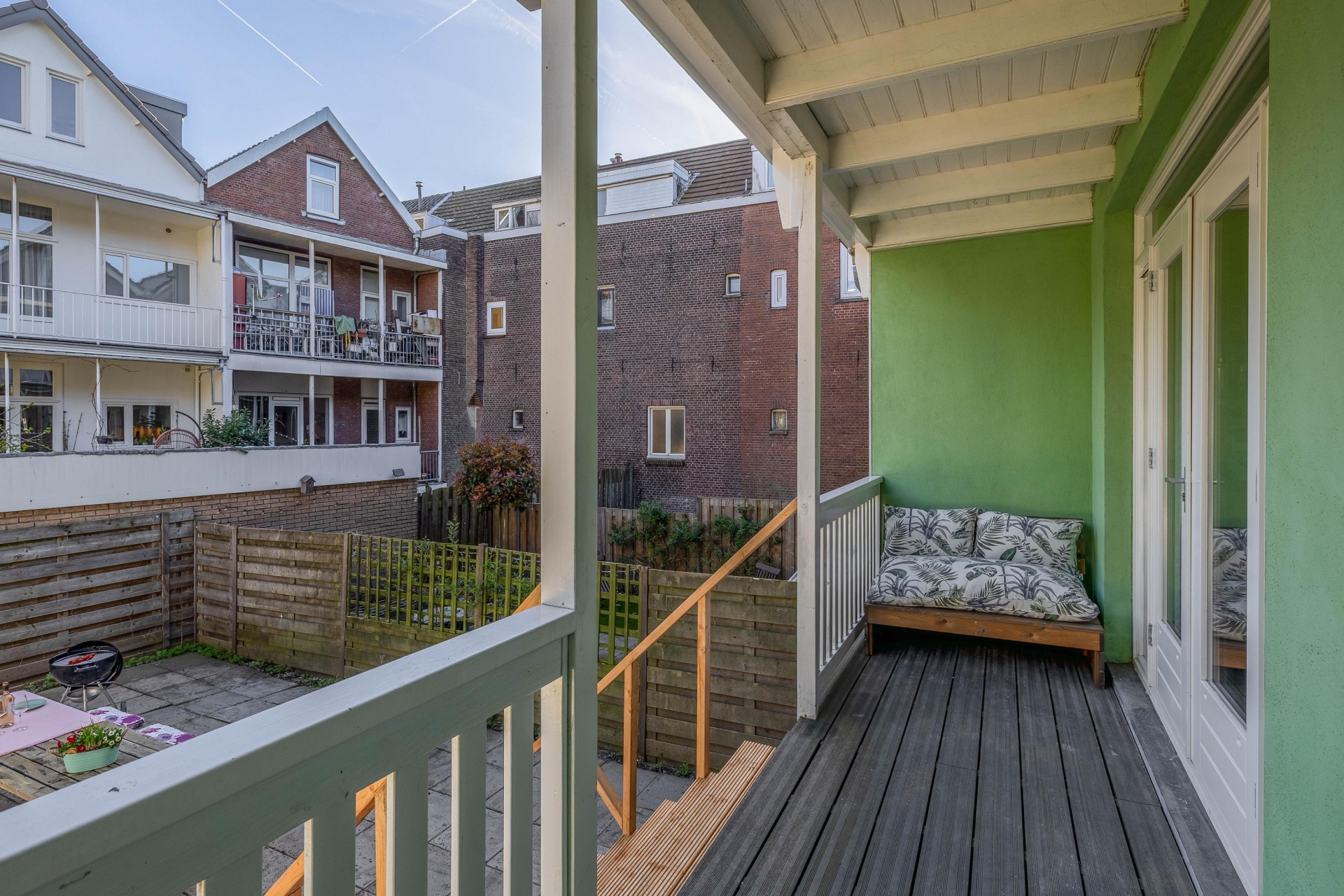 Via openslaande deuren bereik je de veranda en fijne stadstuin, 's Zomers hét verlengstuk van je woonruimte waar je in alle rust kunt genieten van lange avonden buiten.