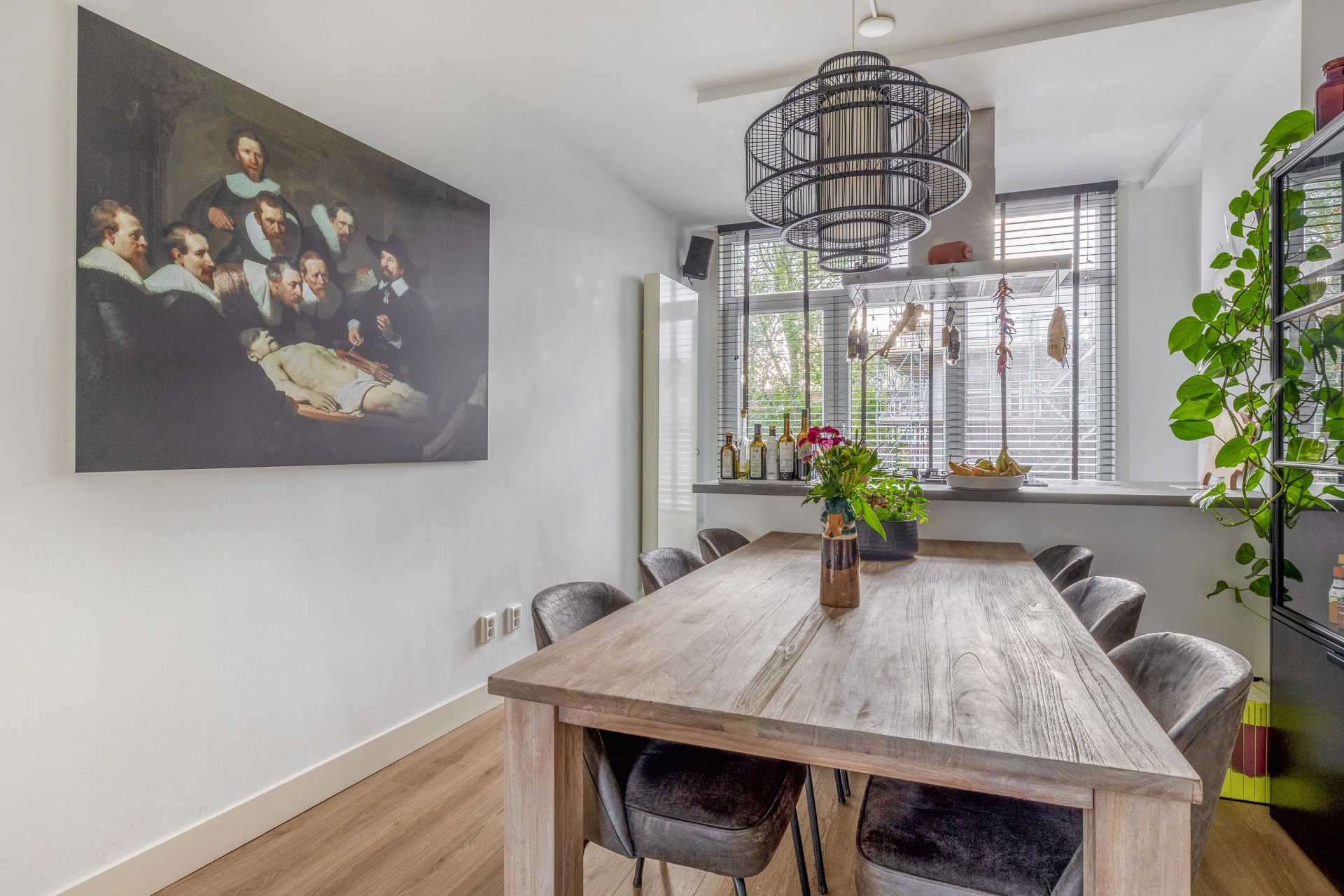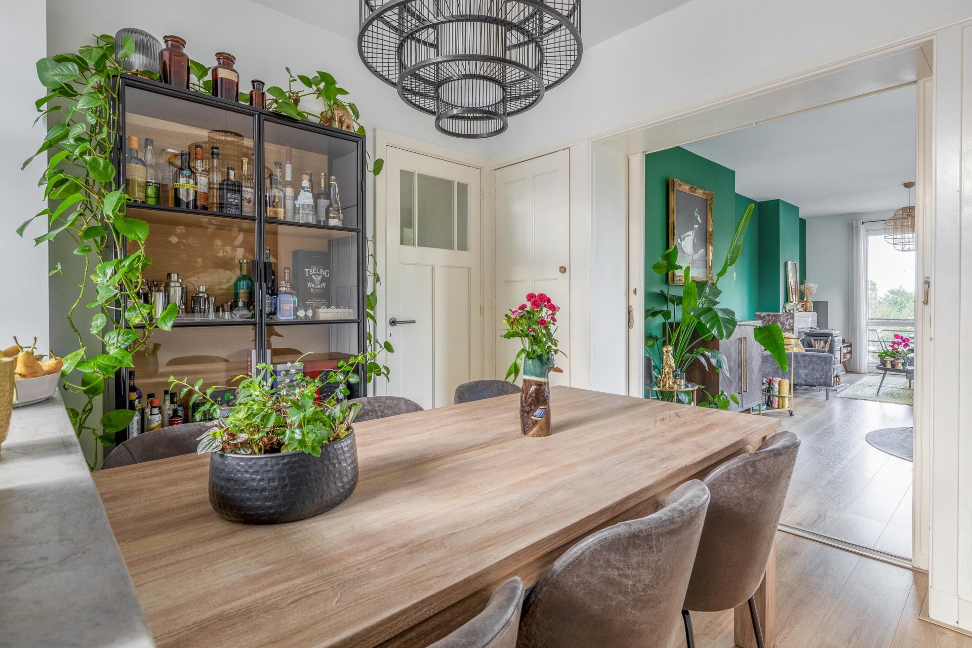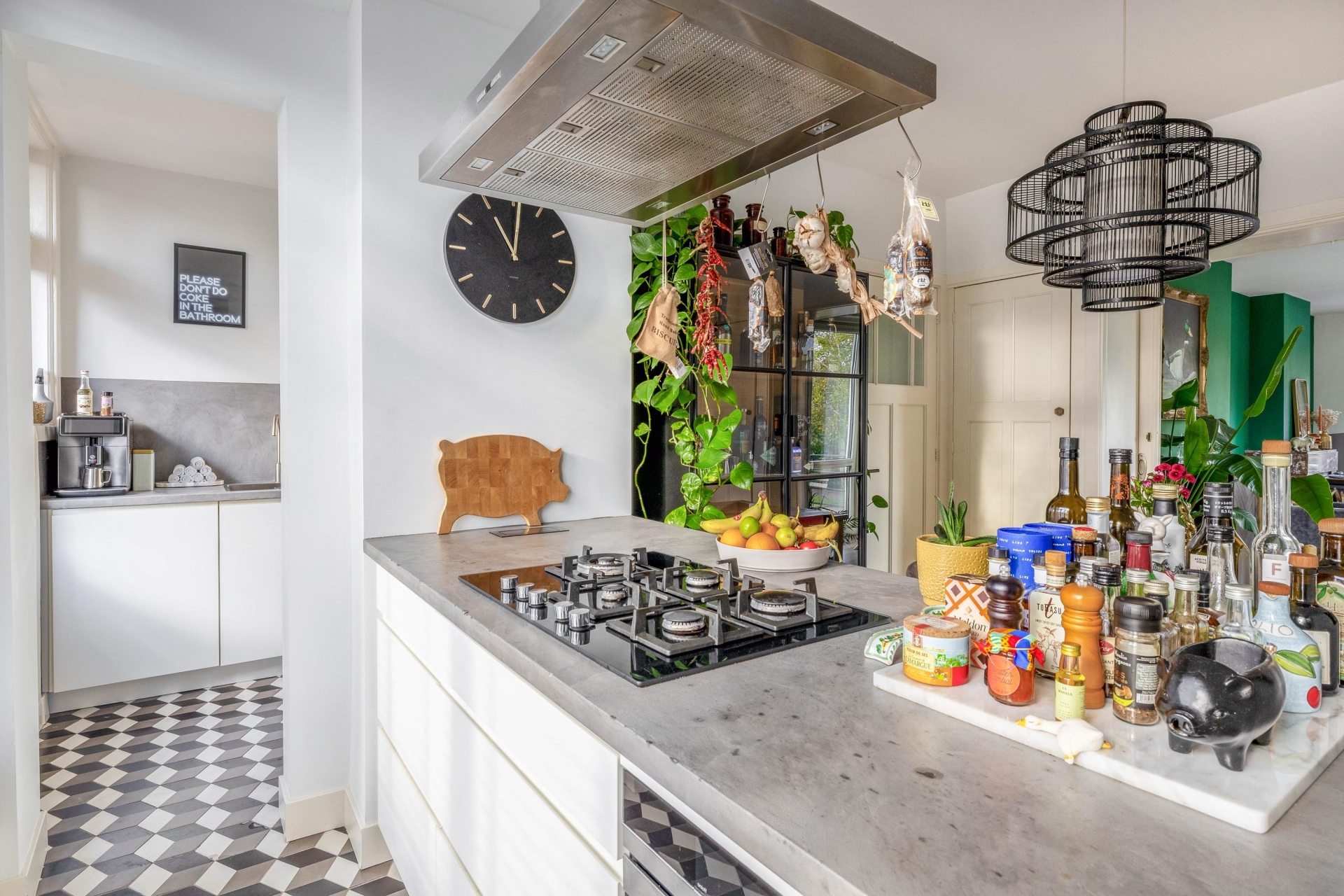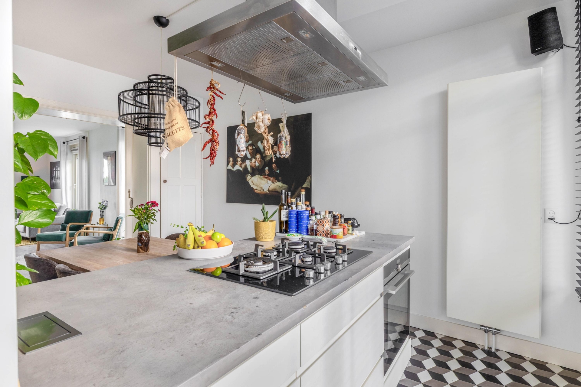 De keuken is het hart van het huis. Dankzij een slimme doorbraak tussen de oorspronkelijke keuken en eetkamer is een ruime woonkeuken ontstaan, met een breed kookeiland, ingebouwde oven, afzuigkap en vaatwasser. Aan de achterzijde kun je via de keuken het derde balkon op, perfect voor een kop koffie in de ochtendzon.