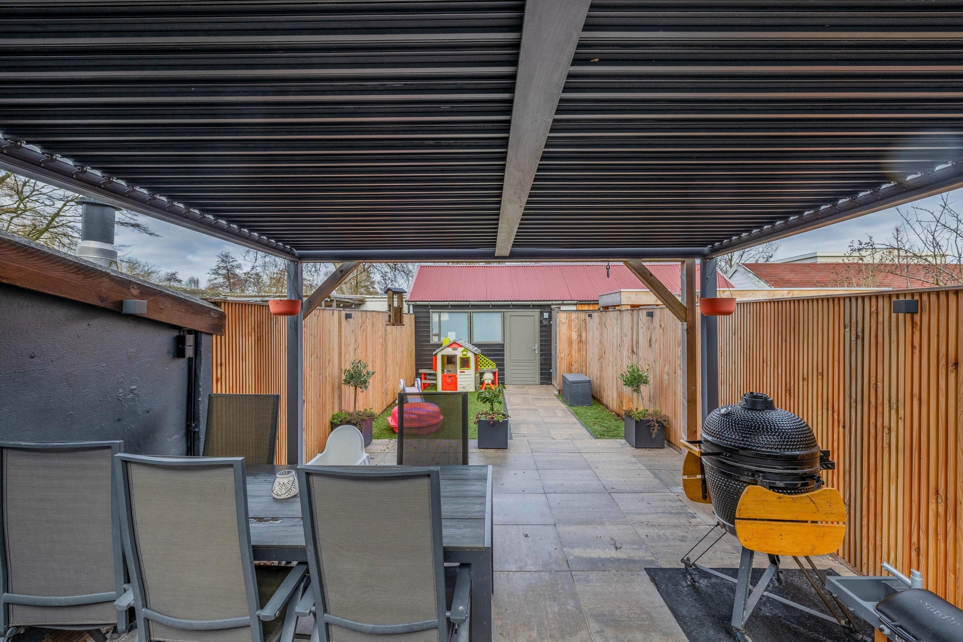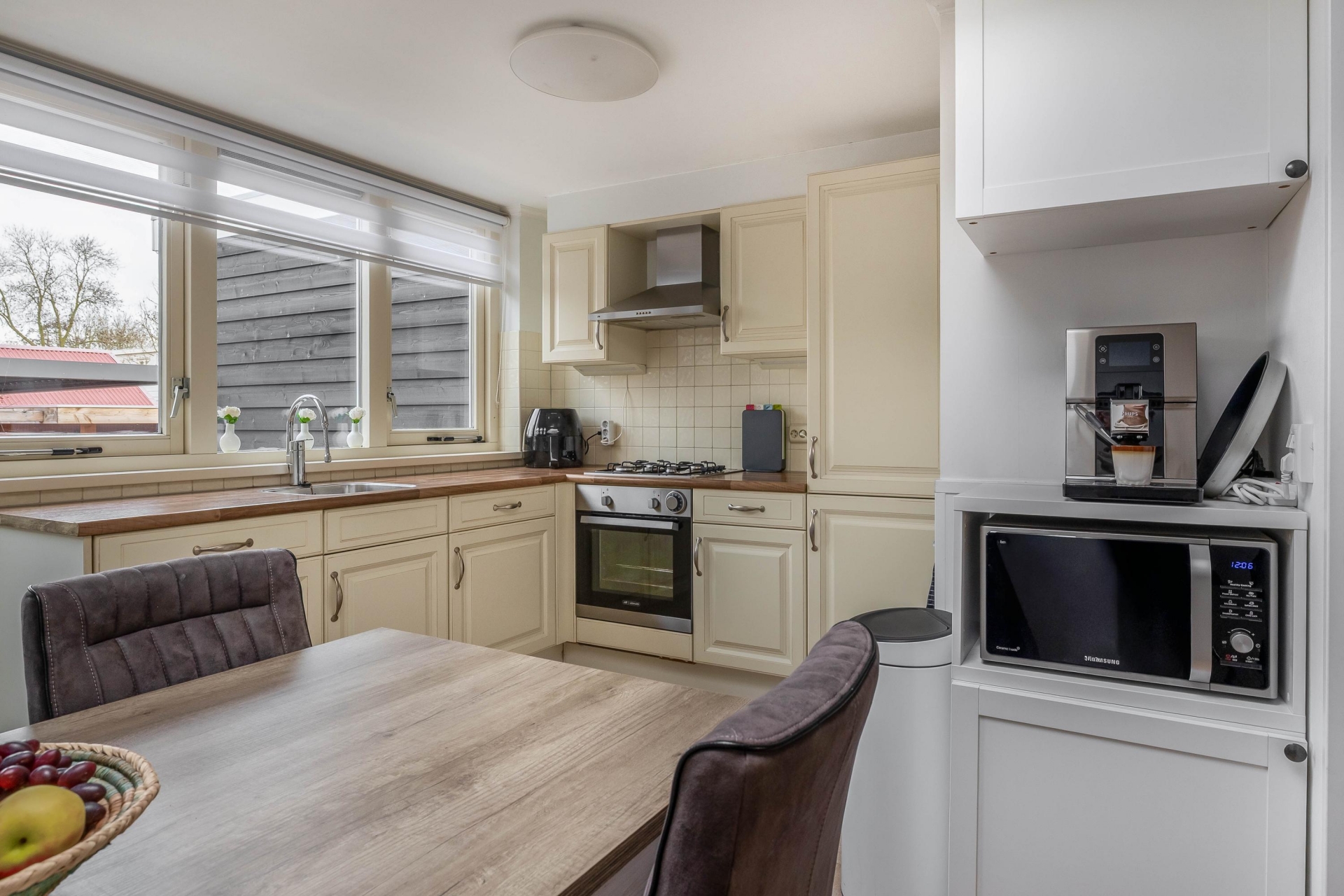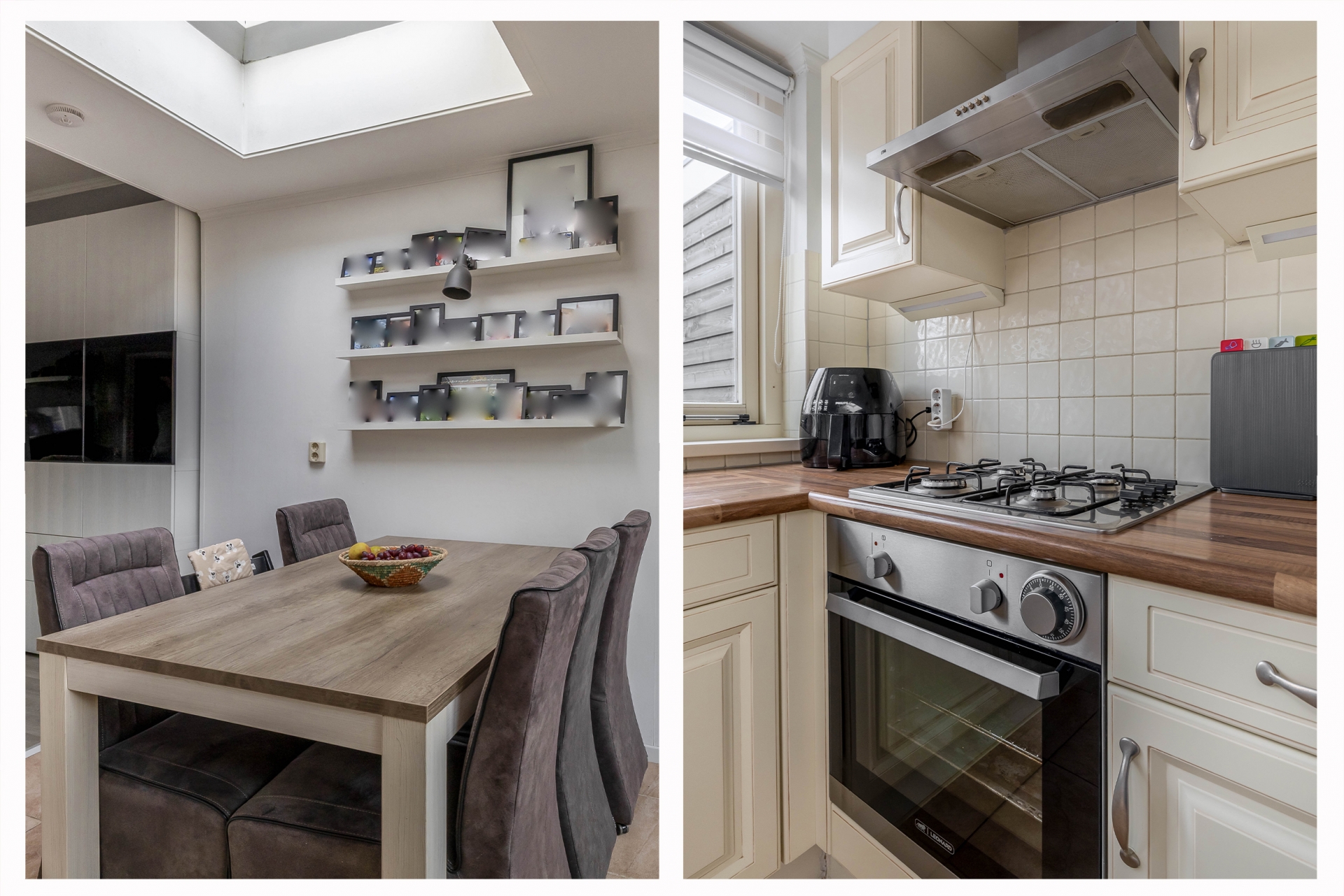 Entree van de woning met het toilet en toegang tot de woonkamer. Lichte woonkamer gesitueerd aan de voorzijde van de woning. Centraal op de begane grond is een ruime kast aanwezig waar zich de cv-ketel (2024), wasmachine en meterkast bevinden. Aan de achterzijde is de ruime keuken te vinden, welke zich in de uitbouw (2012) van de woning bevindt. Deze beschikt over diverse inbouwapparatuur. Door de aanwezige lichtkoepel is er veel daglichttoetreding aanwezig. Vanuit de keuken is er middels een loopdeur toegang tot de achtertuin. Deze is gesitueerd op het noordwesten. Door de diepte van de tuin is er de hele dag van de zon te genieten. Liever een plek in de schaduw? Dat kan middels de aanwezige overkapping. Verder is er nog een berging met vliering en een achterom aanwezig. Direct achter de tuin zijn er groenvoorzieningen aanwezig wat ook veel privacy biedt.