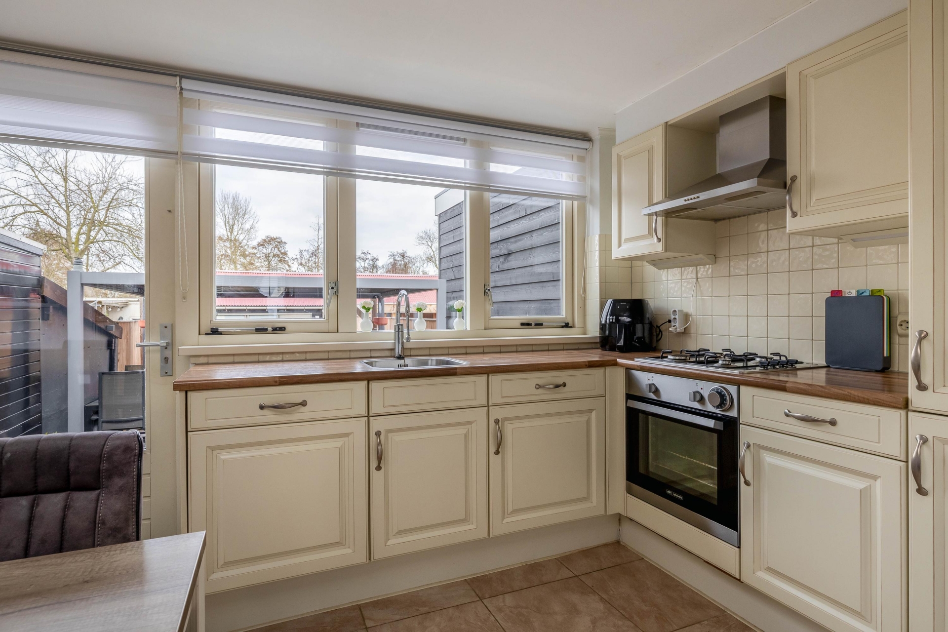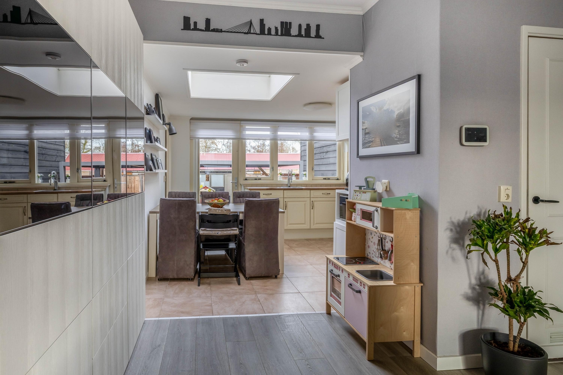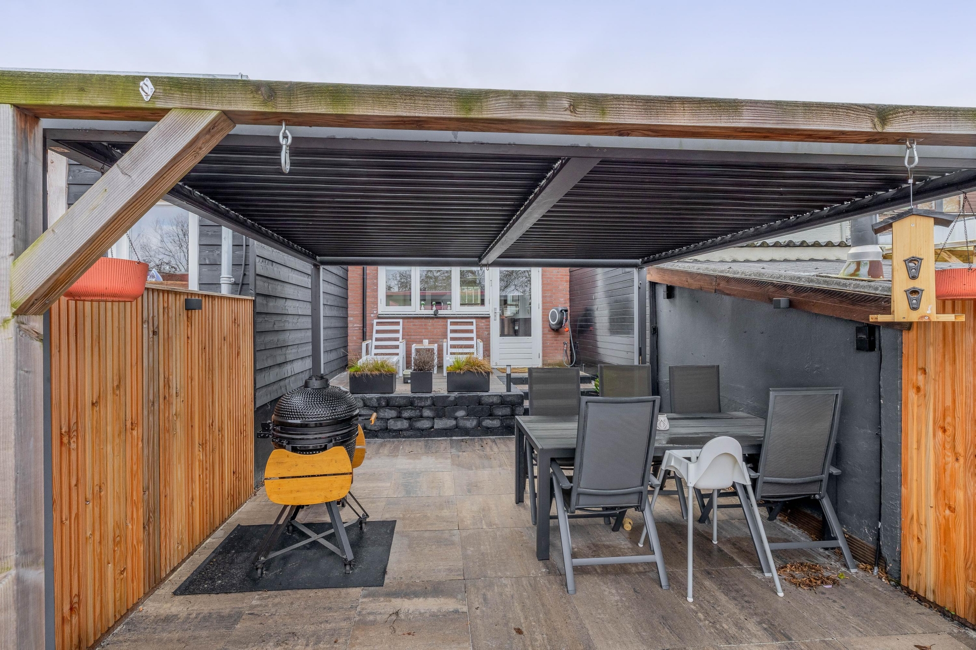 Entree van de woning met het toilet en toegang tot de woonkamer. Lichte woonkamer gesitueerd aan de voorzijde van de woning. Centraal op de begane grond is een ruime kast aanwezig waar zich de cv-ketel (2024), wasmachine en meterkast bevinden. Aan de achterzijde is de ruime keuken te vinden, welke zich in de uitbouw (2012) van de woning bevindt. Deze beschikt over diverse inbouwapparatuur. Door de aanwezige lichtkoepel is er veel daglichttoetreding aanwezig. Vanuit de keuken is er middels een loopdeur toegang tot de achtertuin. Deze is gesitueerd op het noordwesten. Door de diepte van de tuin is er de hele dag van de zon te genieten. Liever een plek in de schaduw? Dat kan middels de aanwezige overkapping. Verder is er nog een berging met vliering en een achterom aanwezig. Direct achter de tuin zijn er groenvoorzieningen aanwezig wat ook veel privacy biedt.