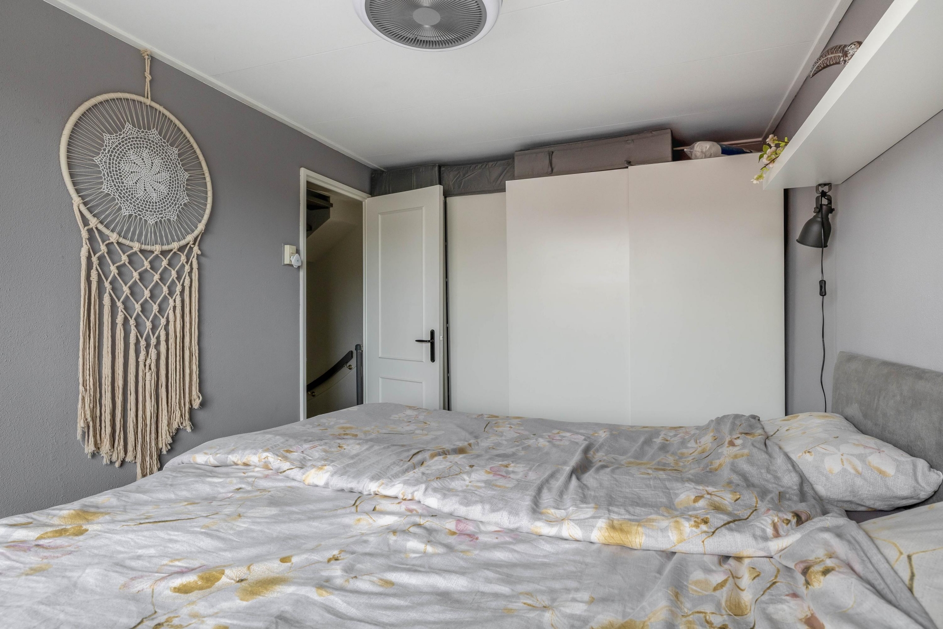 Middels een trap vanuit de woonkamer is de eerste verdieping toegankelijk. Hier zijn 3 slaapkamers, de badkamer en een vaste kast te vinden. Aan de voorzijde van de woning bevinden zich twee slaapkamers. Aan de achterzijde van de woning vindt u de master bedroom alsmede de badkamer. De badkamer is voorzien van een douche, toilet en een wastafel met meubel. Middels een vaste trap is er toegang tot de bergvliering. Hierdoor wordt het opbergen van de seizoensgebonden spullen wel heel eenvoudig!
