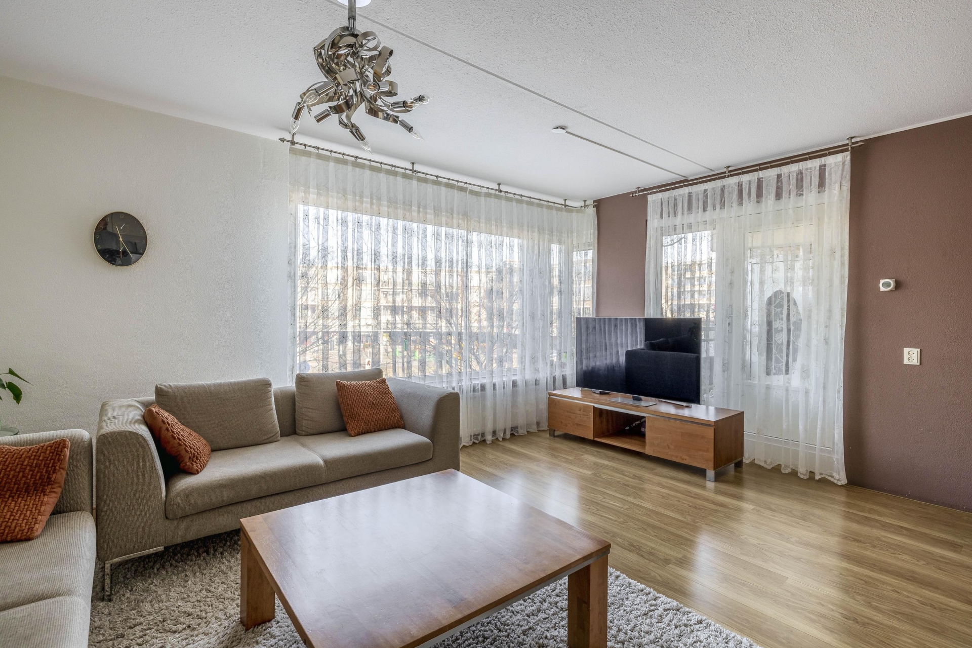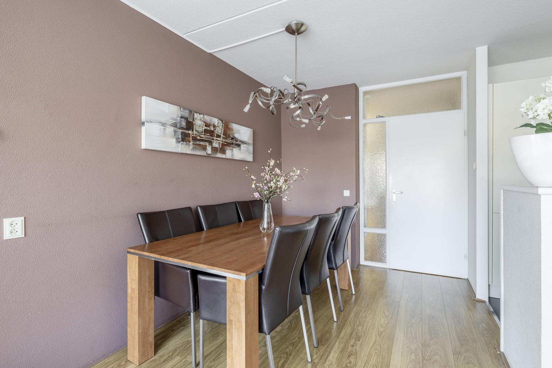 In de woonkamer is ruimte voor een gezellige zithoek en een aparte eethoek.