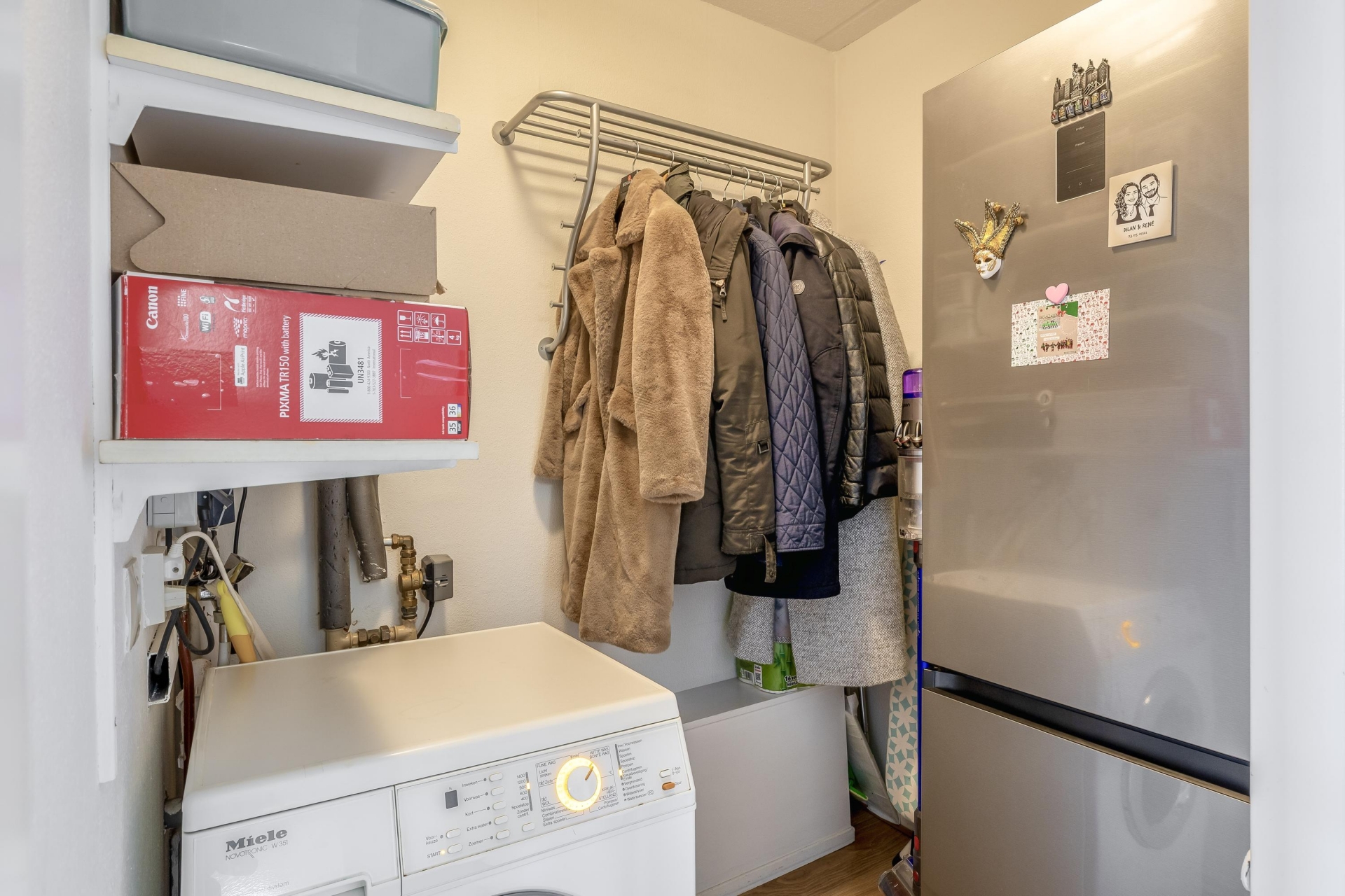 Naast deze kamer bevindt zich verderop in de hal een proviandkast, een meterkast en een inpandige berging met aansluiting voor wasapparatuur. Naast deze berging is een aparte toiletruimte aanwezig; geheel betegeld en voorzien van wandcloset en fontein. Naast dit toilet bevindt zich de 3e slaapkamer (9m²).