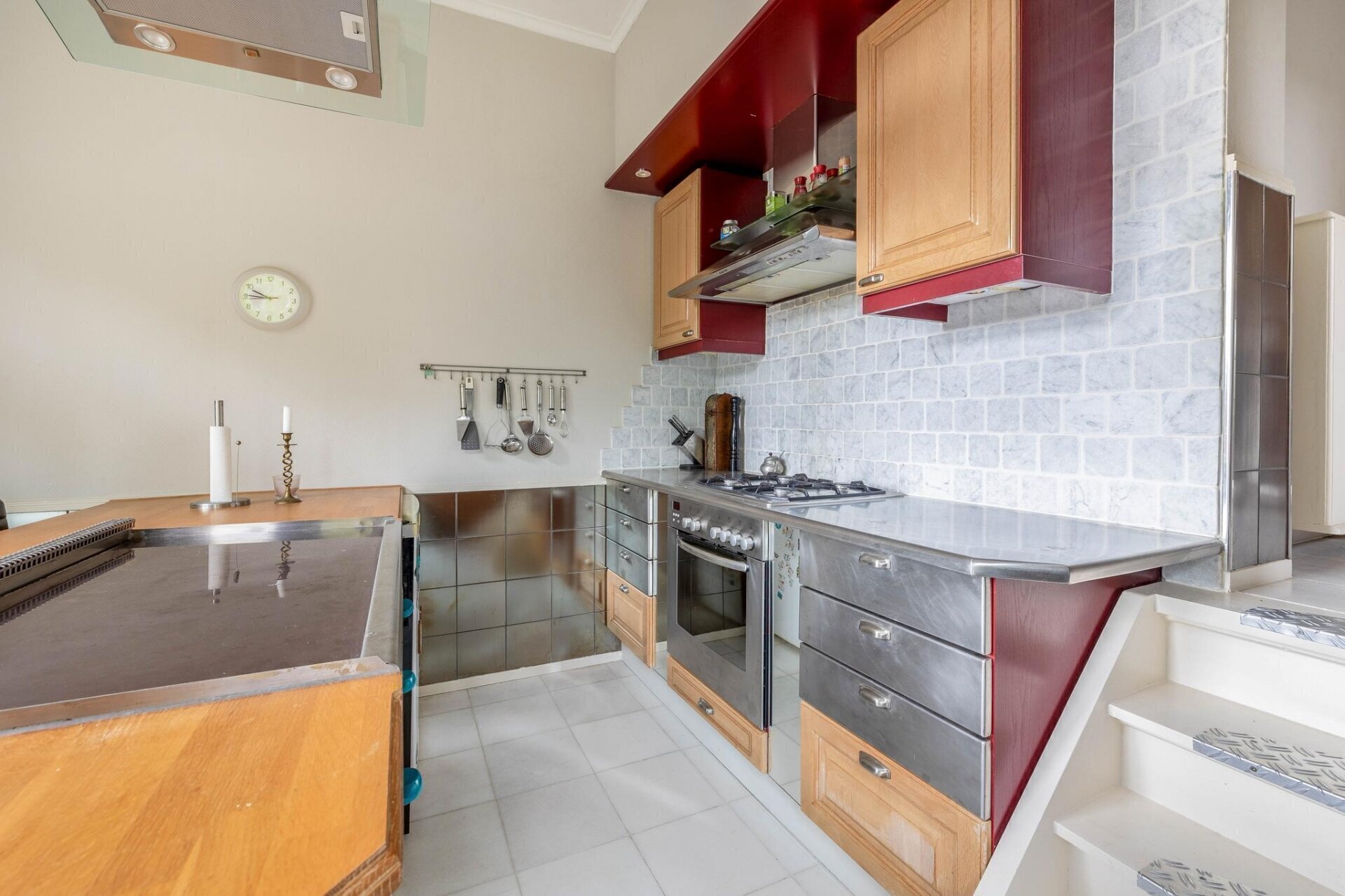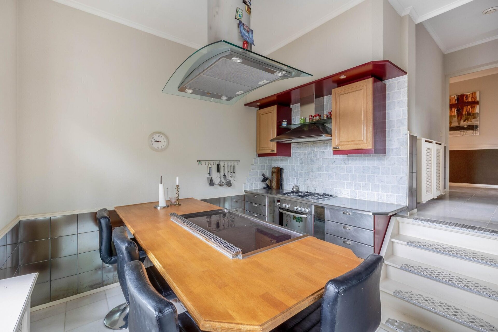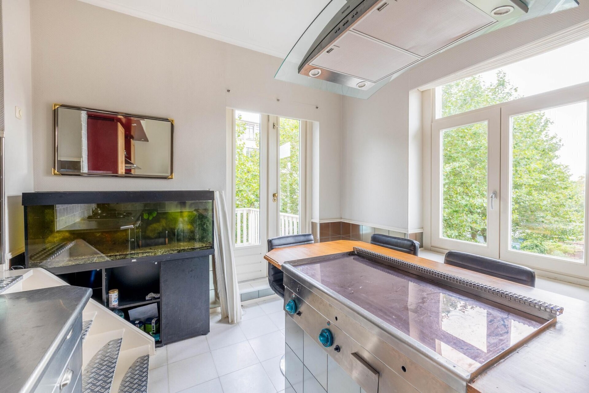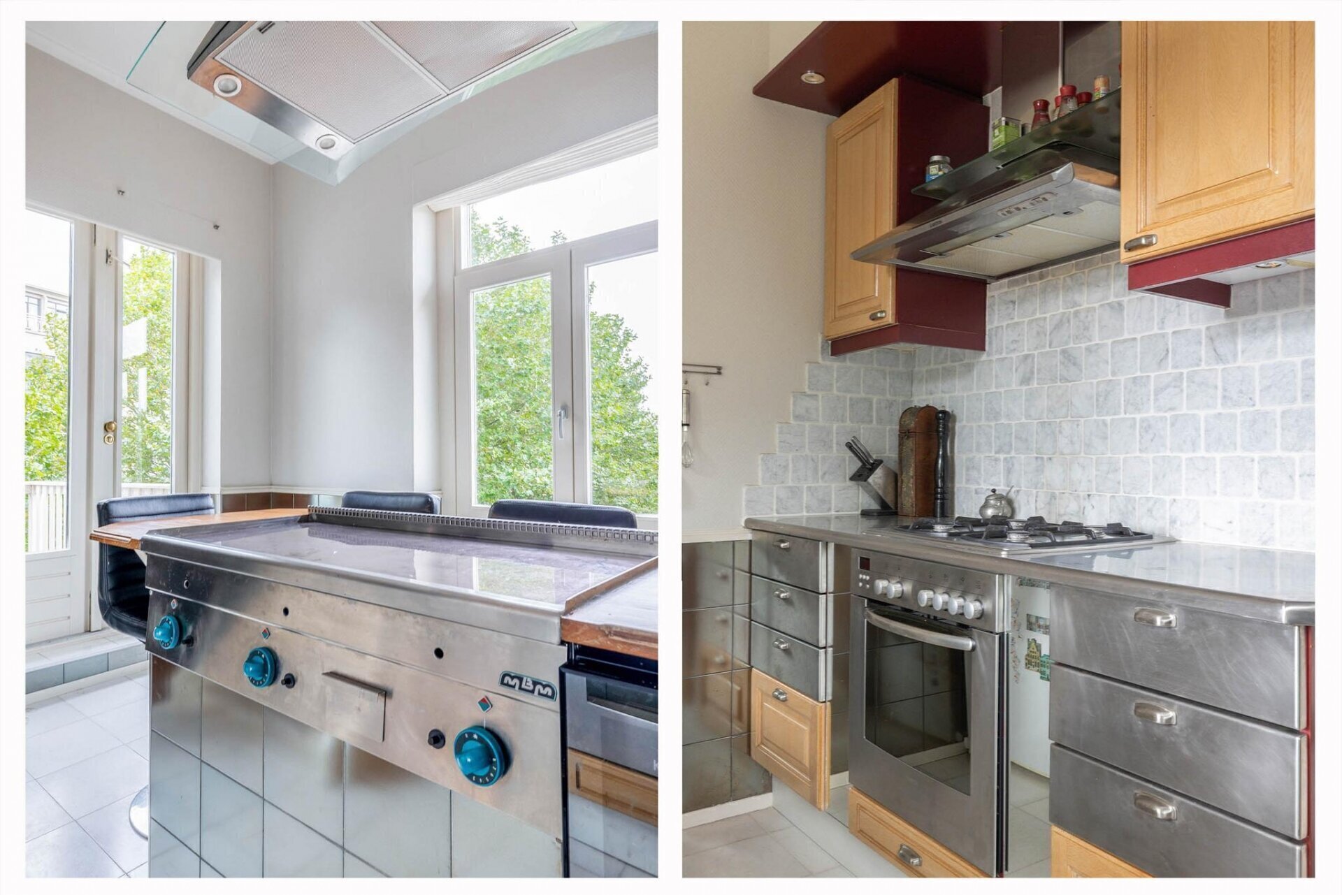 Keuken, verdeeld over twee delen: het kookgedeelte en het spoelgedeelte, voorzien van een keukenblok met een ingebouwde koelkast. Het kookgedeelte is uitgerust met een keukenblok en een gasfornuis met oven. Het kookgedeelte is tevens voorzien van een bar met Teppanyaki-grill.