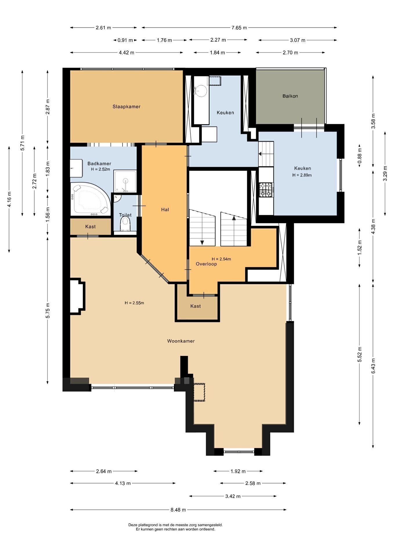 “Deze informatie is door ons met de nodige zorgvuldigheid samengesteld. Onzerzijds wordt echter geen enkele aansprakelijkheid aanvaard voor enige onvolledigheid, onjuistheid of anderszins, dan wel de gevolgen daarvan. Alle opgegeven maten en oppervlakten zijn indicatief.”