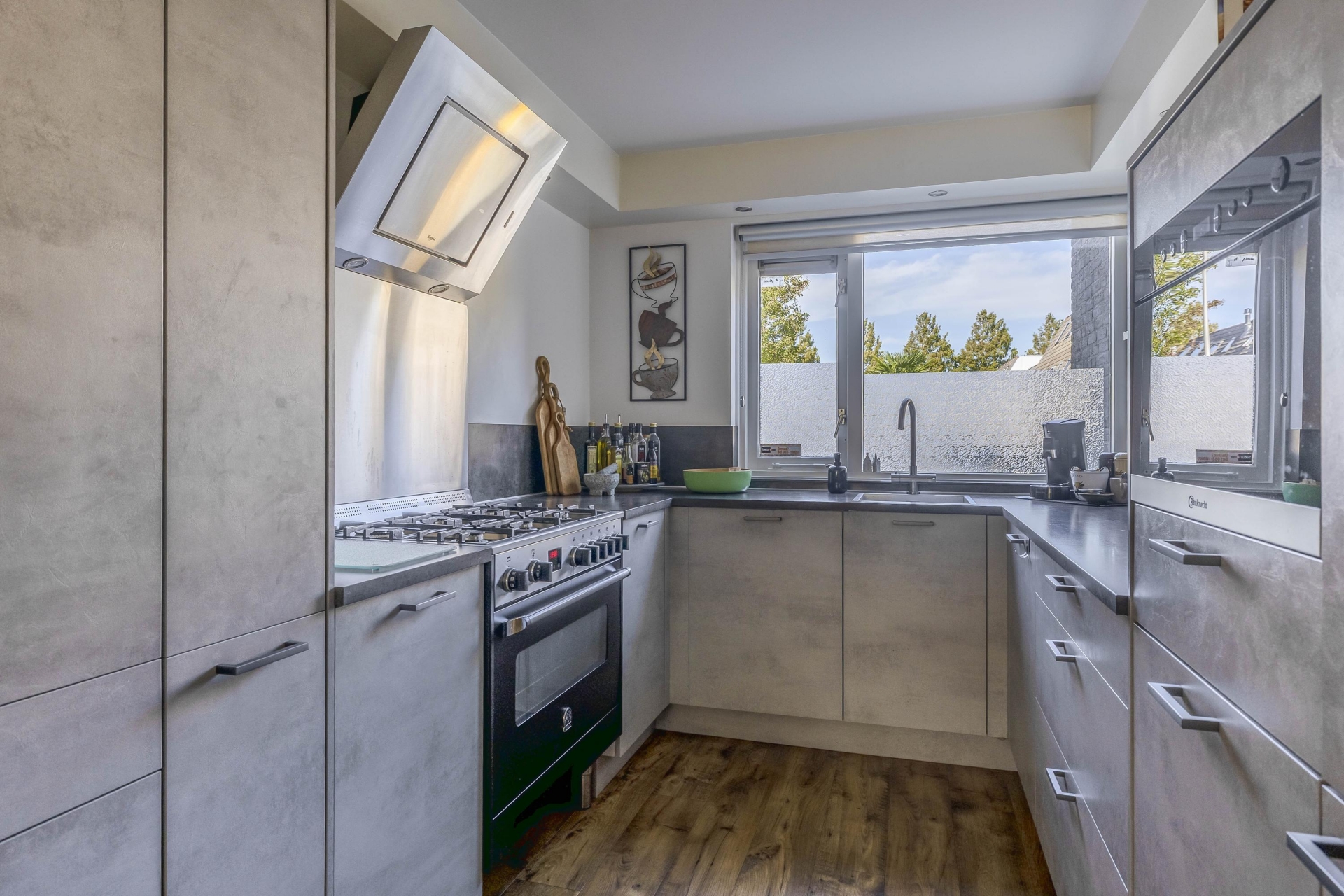 De open verbinding met de tuin en het water erachter maakt het extra aantrekkelijk. Ook de keuken (2018) is een fijne plek in huis: modern uitgevoerd, met veel werkruimte, een groot fornuis met 6 gaspitten, oven, heetwaterkraan, vaatwasser, koelkast, en een combi oven/magnetron. De ideale combinatie van comfort, sfeer en functionaliteit.