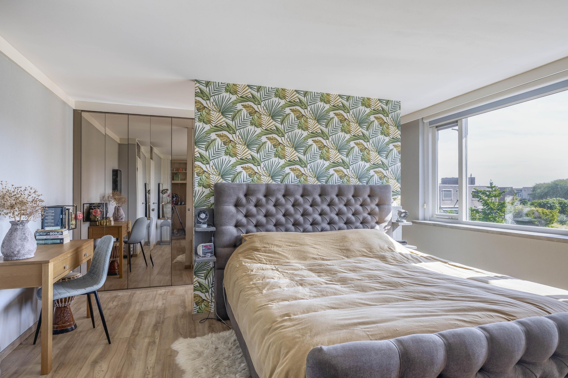 Met in totaal vijf kamers, waaronder vier slaapkamers, is dit huis klaar voor een gezin. De grootste slaapkamer bevindt zich op de eerste verdieping aan de achterzijde en biedt plek voor een kingsize bed en heeft ruime kledingkasten over de volle breedte van de slaapkamer. Verder vind je op deze verdieping nog een slaapkamer aan de voorzijde en een nette badkamer (5 jaar oud).