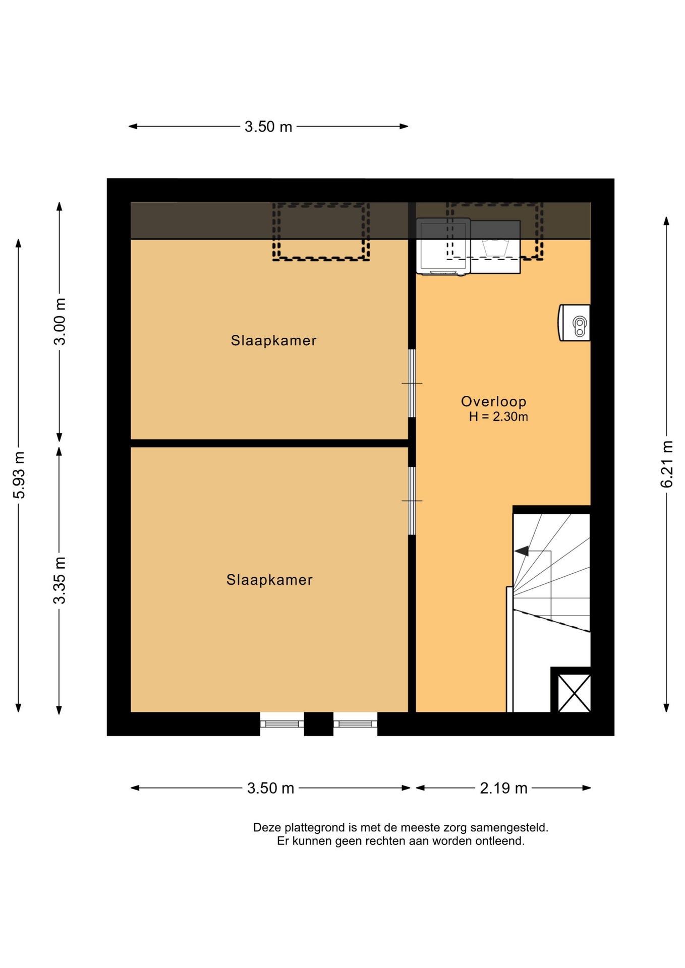 “Deze informatie is door ons met de nodige zorgvuldigheid samengesteld. Onzerzijds wordt echter geen enkele aansprakelijkheid aanvaard voor enige onvolledigheid, onjuistheid of anderszins, dan wel de gevolgen daarvan. Alle opgegeven maten en oppervlakten zijn indicatief.”