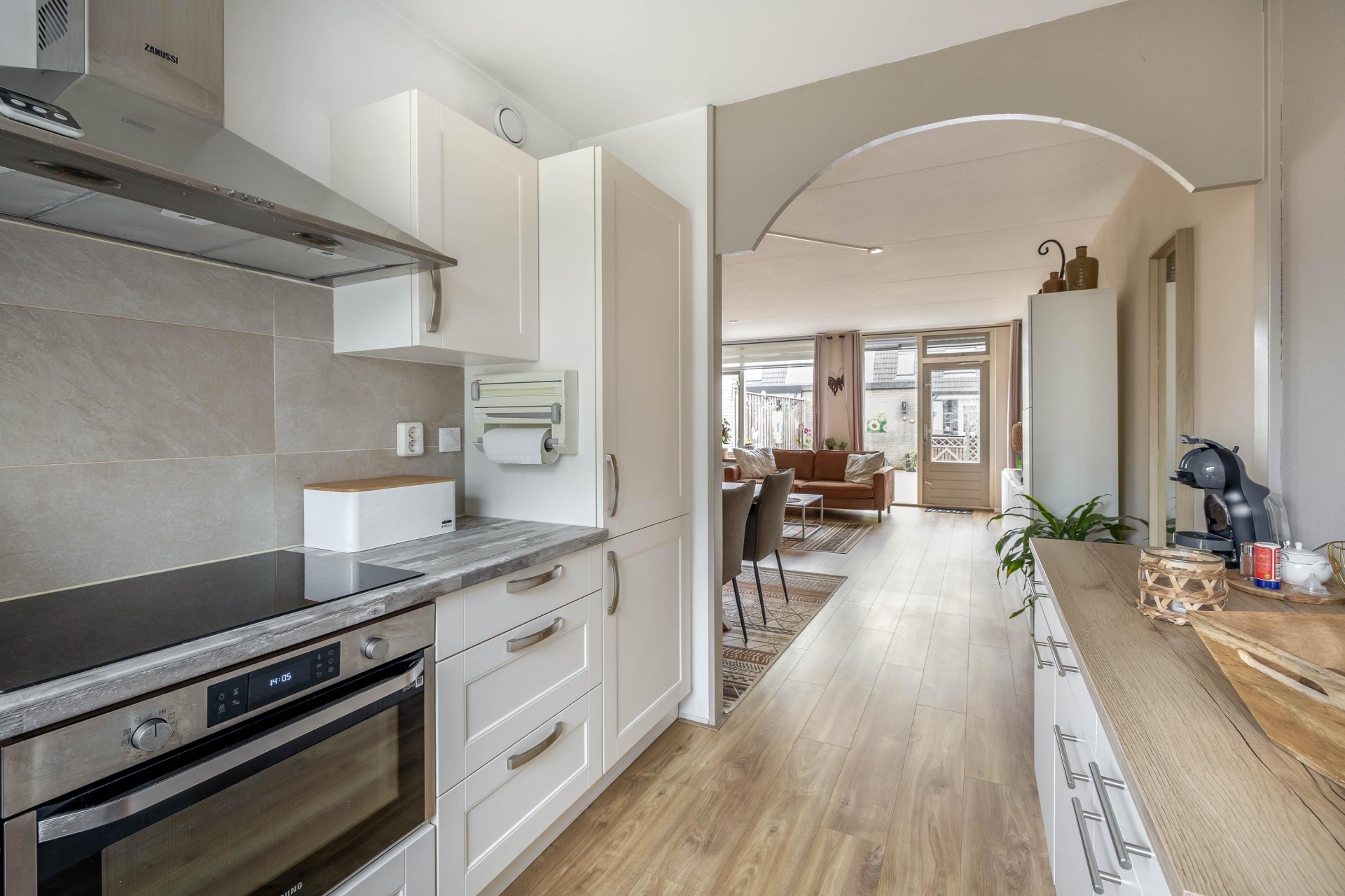 De keuken is modern en verzorgd uitgevoerd en sluit mooi aan bij de rest van het huis. Dankzij de slimme opstelling is er veel werk- en kastruimte, ideaal voor wie graag kookt of gewoon houdt van overzicht en gemak. De lichte kleuren en strakke lijnen zorgen voor een tijdloze uitstraling.