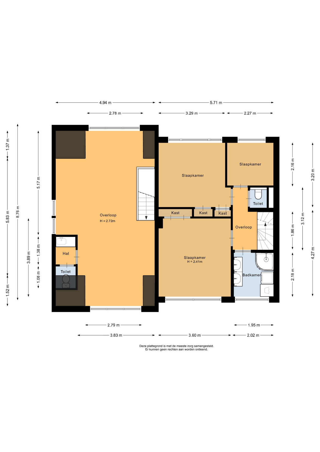 “Deze informatie is door ons met de nodige zorgvuldigheid samengesteld. Onzerzijds wordt echter geen enkele aansprakelijkheid aanvaard voor enige onvolledigheid, onjuistheid of anderszins, dan wel de gevolgen daarvan. Alle opgegeven maten en oppervlakten zijn indicatief.”