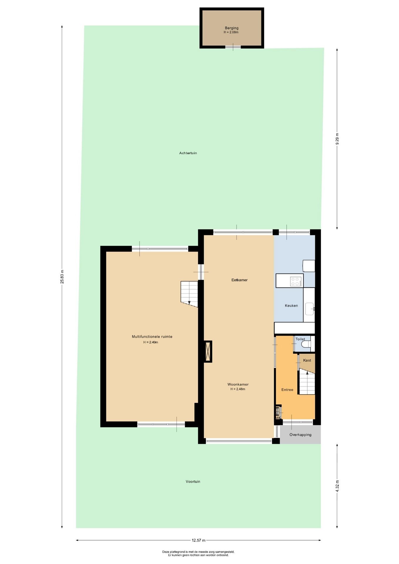 “Deze informatie is door ons met de nodige zorgvuldigheid samengesteld. Onzerzijds wordt echter geen enkele aansprakelijkheid aanvaard voor enige onvolledigheid, onjuistheid of anderszins, dan wel de gevolgen daarvan. Alle opgegeven maten en oppervlakten zijn indicatief.”