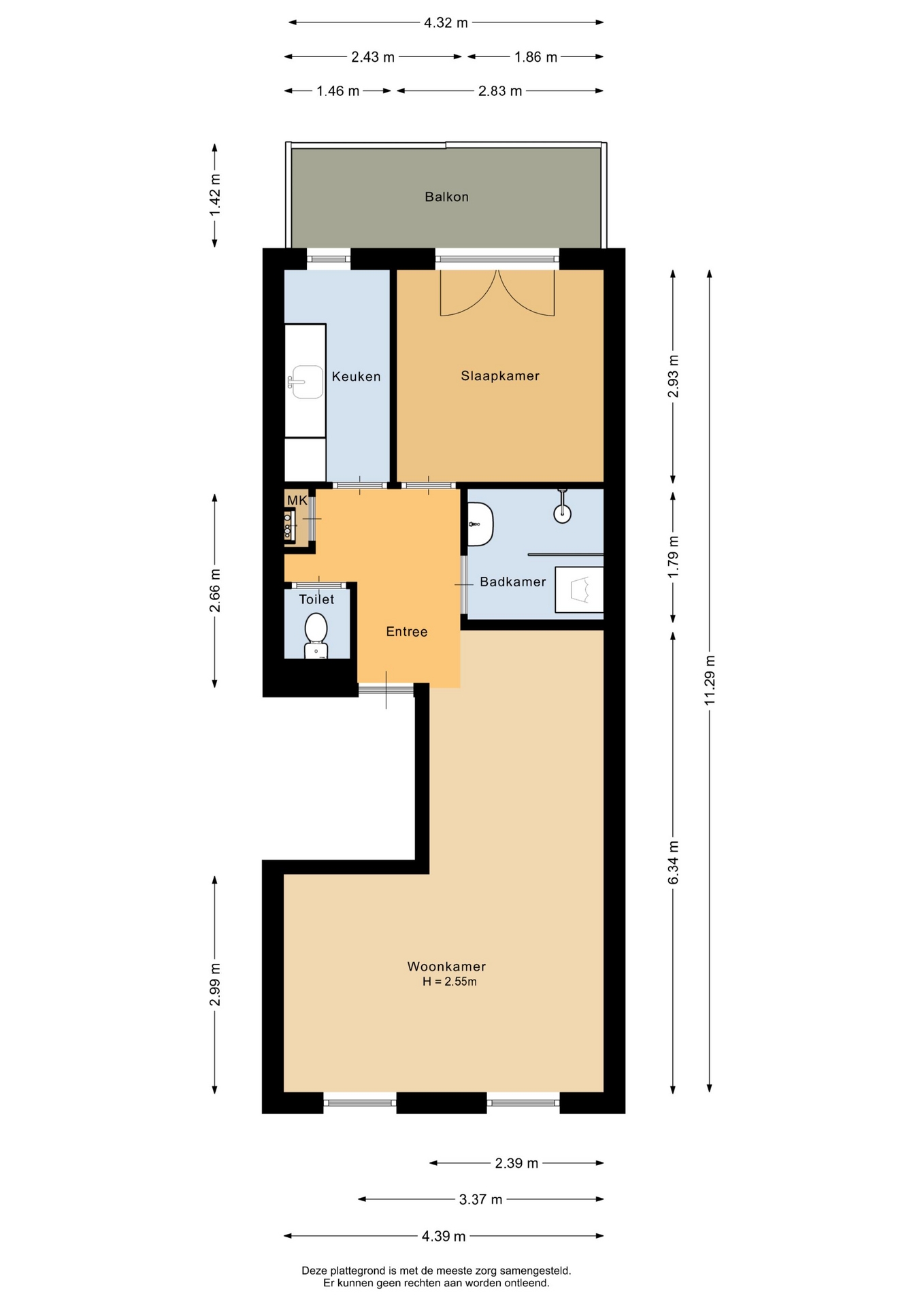 “Deze informatie is door ons met de nodige zorgvuldigheid samengesteld. Onzerzijds wordt echter geen enkele aansprakelijkheid aanvaard voor enige onvolledigheid, onjuistheid of anderszins, dan wel de gevolgen daarvan. Alle opgegeven maten en oppervlakten zijn indicatief.”