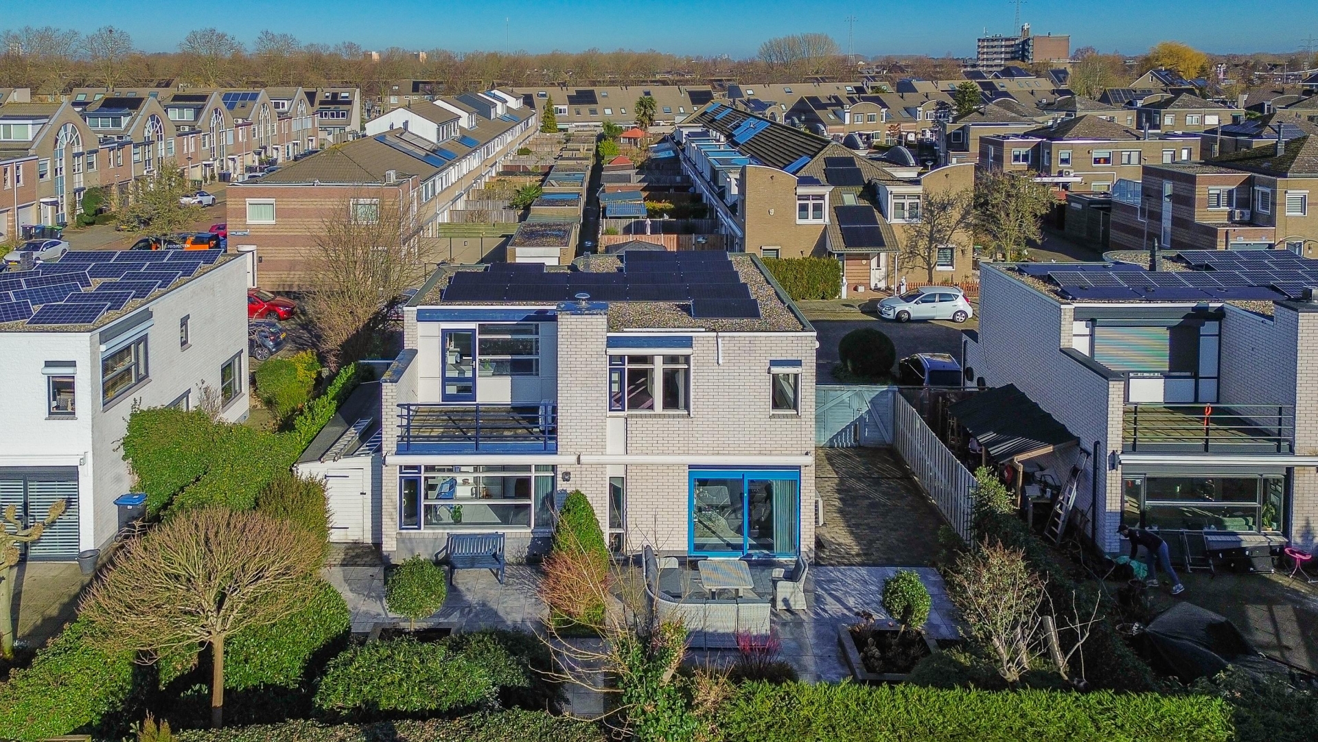 Buitenleven doe je hier in stijl. De fraai aangelegde achtertuin ligt perfect op de zon en biedt volop privacy dankzij de groene erfafscheiding. Het grote terras nodigt uit tot loungen of buiten eten, en kinderen kunnen hier veilig spelen. Ook de voortuin is verzorgd en biedt naast een fijne uitstraling ook praktische voordelen: plek om meerdere auto's te parkeren op eigen erf.