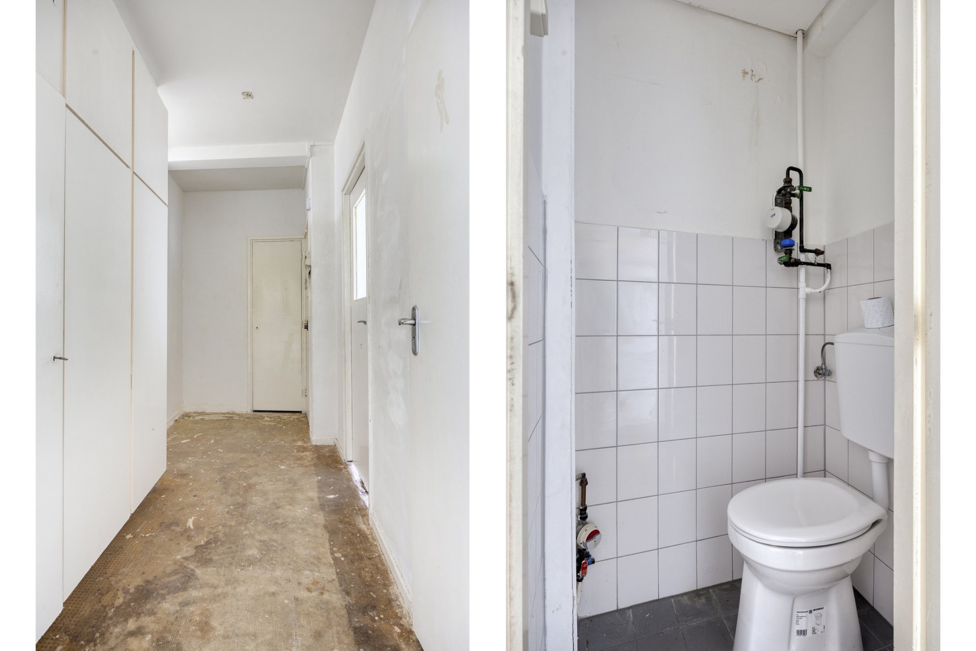 De ruimte biedt volop mogelijkheden voor een moderne indeling. Zie jij hier een strakke vloer, glad gestucte wanden en een gezellige zithoek? Met wat aandacht maak je hier een sfeervolle leefruimte van.