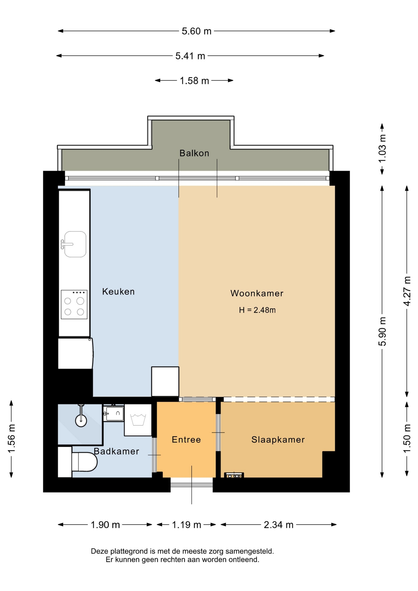 “Deze informatie is door ons met de nodige zorgvuldigheid samengesteld. Onzerzijds wordt echter geen enkele aansprakelijkheid aanvaard voor enige onvolledigheid, onjuistheid of anderszins, dan wel de gevolgen daarvan. Alle opgegeven maten en oppervlakten zijn indicatief.”
