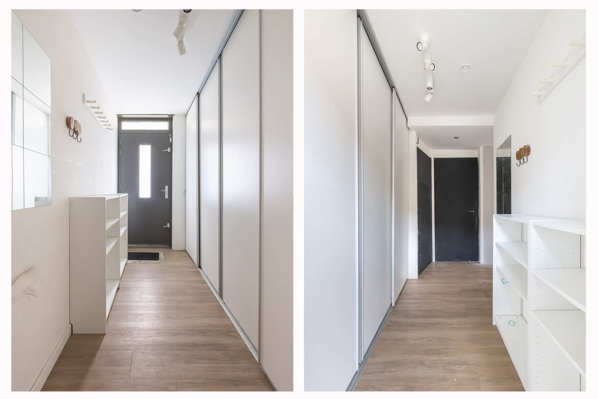 Middels de voordeur komt u terecht in de hal vanwaar u toegang heeft tot alle vertrekken in de woning. Bij binnenkomst bevindt zich aan uw linkerhand een vaste kasten wand met daarin een tweetal elektrische boilers.