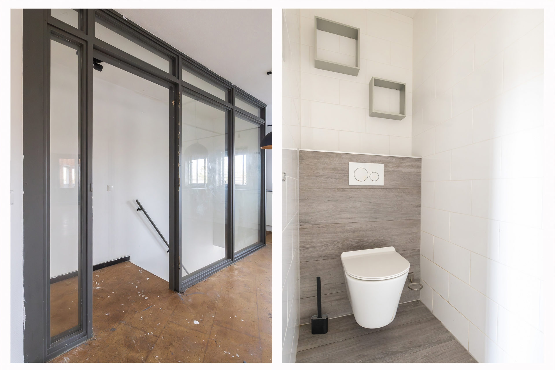 Grenzend hieraan bevindt zich de toiletruimte met hangend closet en wasmachineaansluiting. Tegenover de toiletruimte vindt u de badkamer. Deze volledig betegelde badkamer is uitgevoerd met een antraciet kleurige tegel en is voorzien van een bijzonder riante inloopdouche en een eigen wastafelmeubel. Verder de hal in gelopen vindt u de toegang tot de slaapkamer. Aan de achterzijde van de woning bevindt zich de bijzonder ruime, maar bovenal speelse woonkamer. Tevens bevindt zich hier de open keuken. Deze open keuken is uitgevoerd met een witte kleurstelling en beschikt over diverse Inbouwapparatuur uur te weten; koel/vries combinatie, combi magnetron, 4-pits inductie kookplaat, vaatwasser en rvs spoelbak.