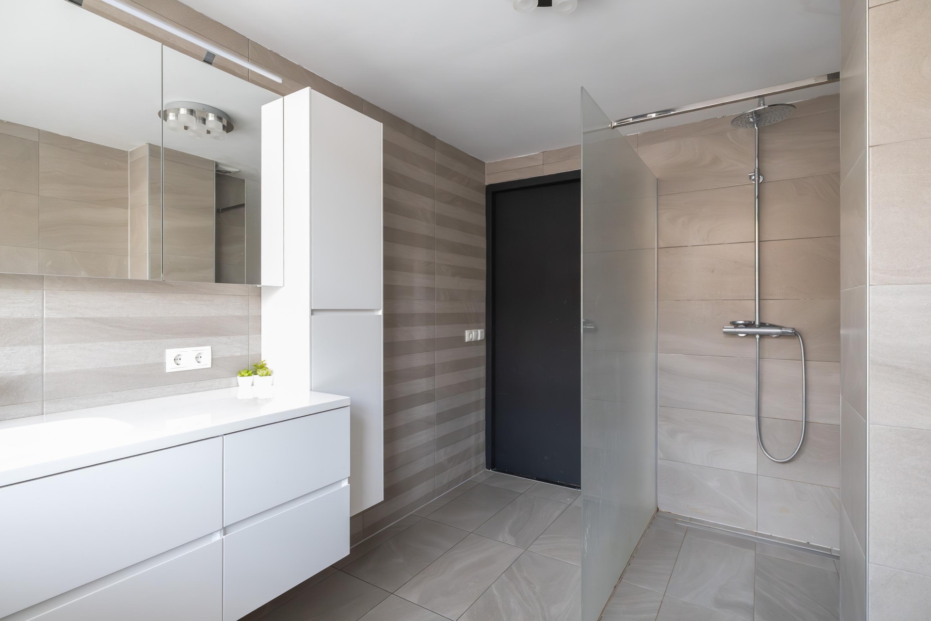 Vanuit de hal, waar zich de meterkast bevindt, loopt u middels de vaste trap naar de bovengelegen verdieping. Direct op de overloop vindt u de volledig betegelde toiletruimte met hangend closet. Vanuit de overloop komt u terecht in de fraaie woonkeuken die is uitgevoerd met witte en zwarte kastdeuren en beschikt over diverse Inbouwapparatuur te weten; combi magnetron, vaatwasser en 4-pits inductie kookplaat. Grenzend aan de woonkeuken vindt u de tweede slaapkamer van de woning met daaraan vast een prachtig, moderne badkamer! De badkamer is uitgevoerd met een riante inloopdouche. Aan de achterzijde vindt u wederom een speelse woonkamer met toegang tot het achtergelegen dakterras. Dit dakterras is gelegen op het noordwesten en bied u een heerlijke plek om te genieten in zowel de zon als de schaduw.