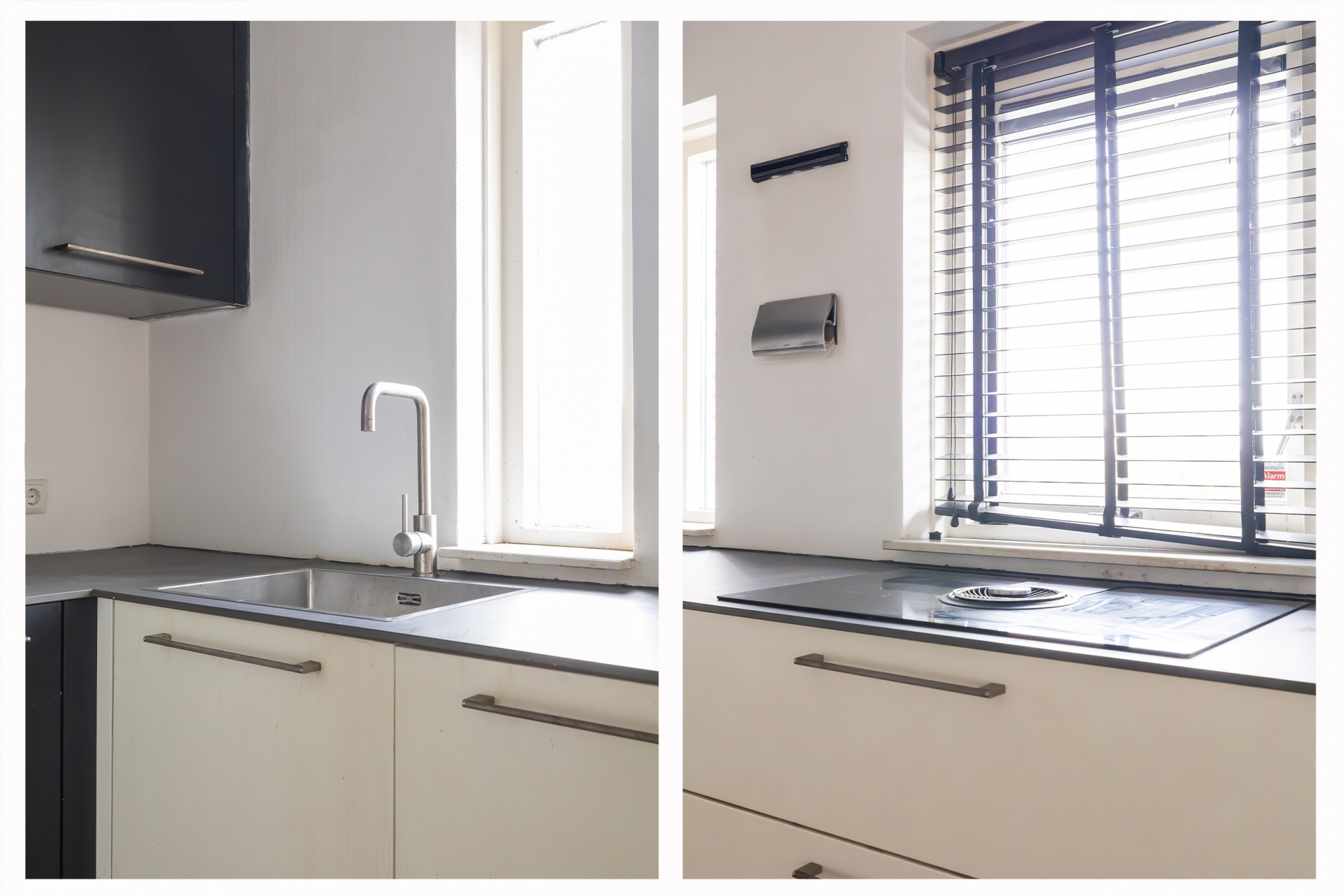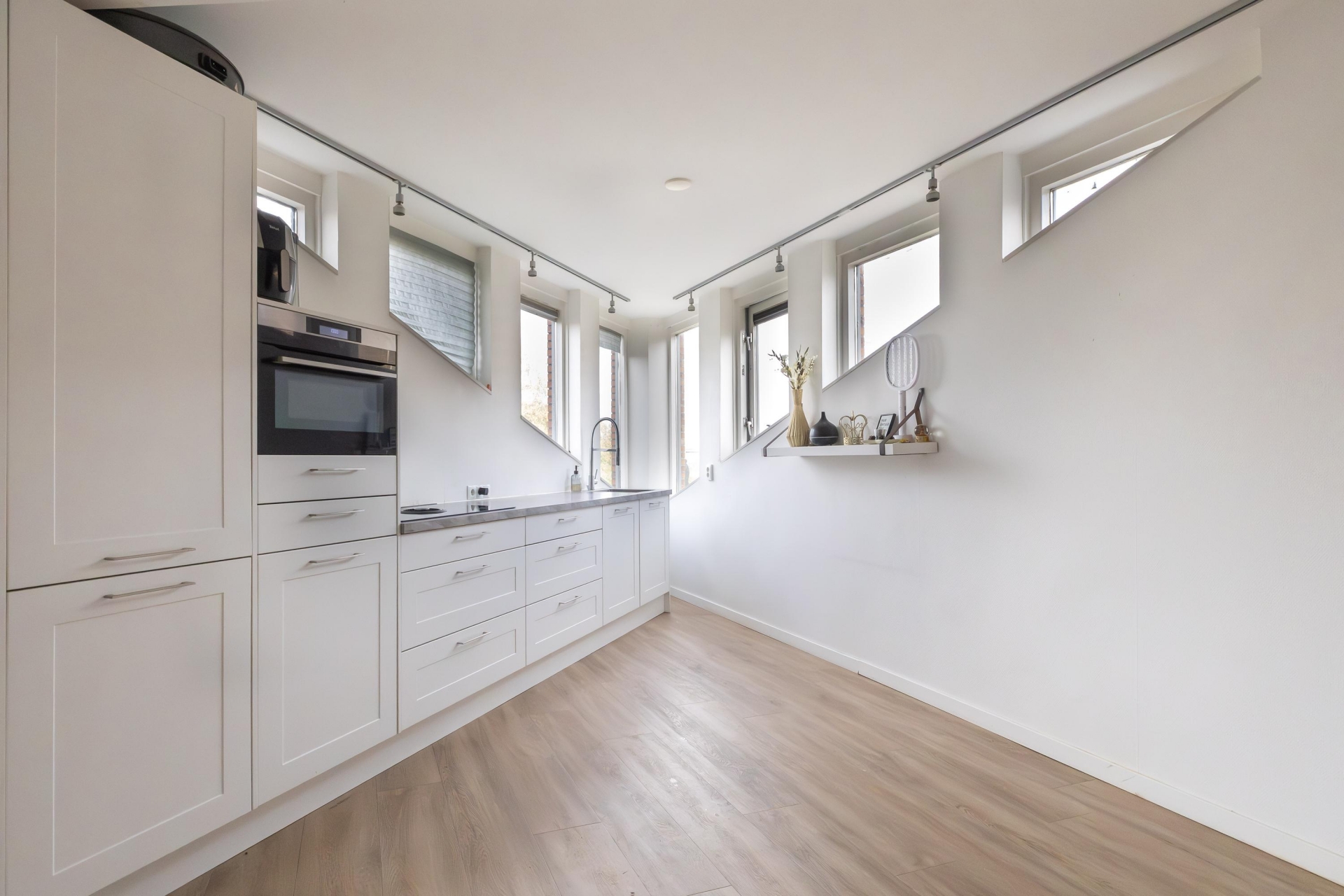 Vanuit de hal, waar zich de meterkast bevindt, loopt u middels de vaste trap naar de bovengelegen verdieping. Direct op de overloop vindt u de volledig betegelde toiletruimte met hangend closet. Vanuit de overloop komt u terecht in de fraaie woonkeuken die is uitgevoerd met witte en zwarte kastdeuren en beschikt over diverse Inbouwapparatuur te weten; combi magnetron, vaatwasser en 4-pits inductie kookplaat. Grenzend aan de woonkeuken vindt u de tweede slaapkamer van de woning met daaraan vast een prachtig, moderne badkamer! De badkamer is uitgevoerd met een riante inloopdouche. Aan de achterzijde vindt u wederom een speelse woonkamer met toegang tot het achtergelegen dakterras. Dit dakterras is gelegen op het noordwesten en bied u een heerlijke plek om te genieten in zowel de zon als de schaduw.