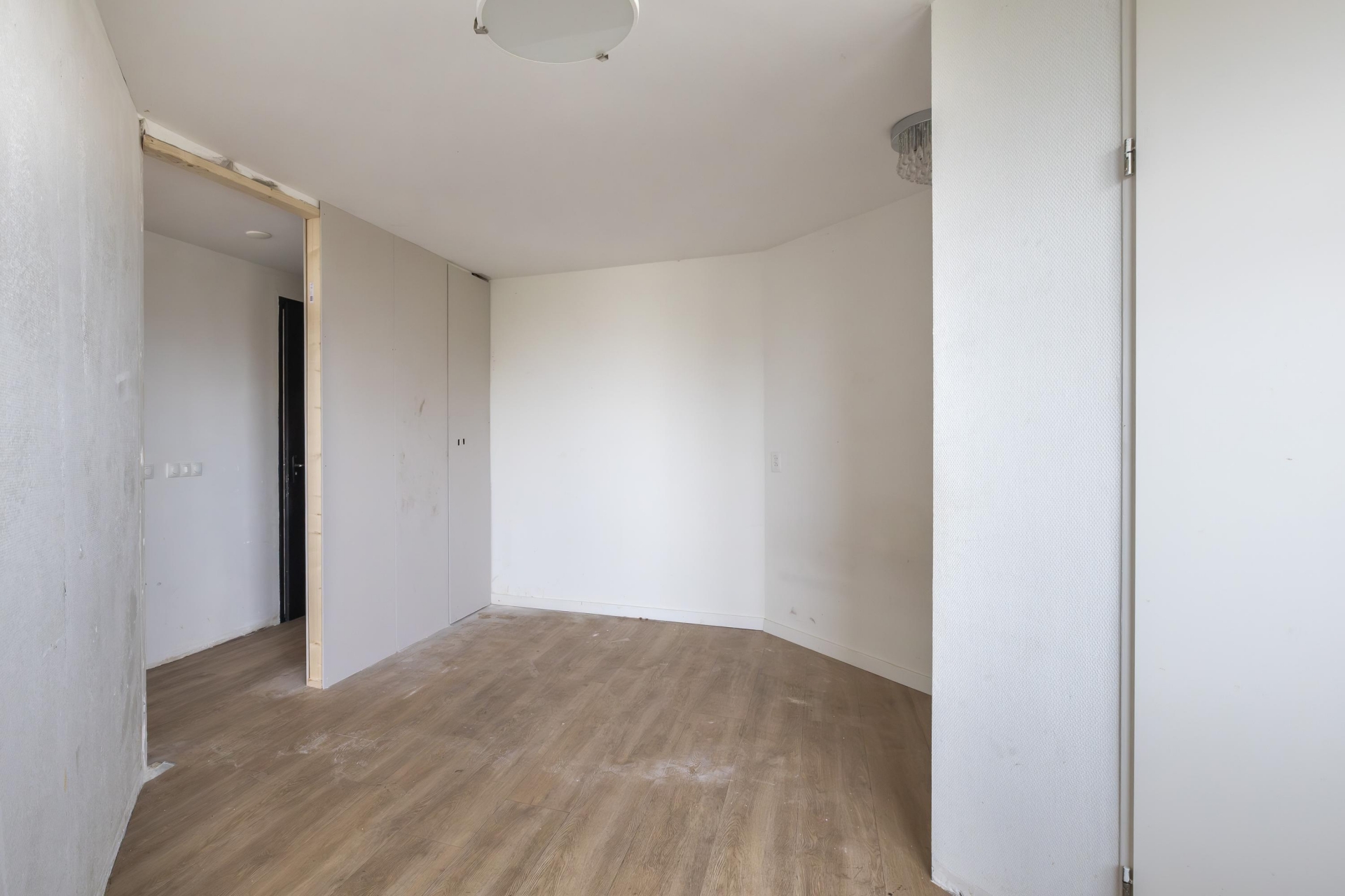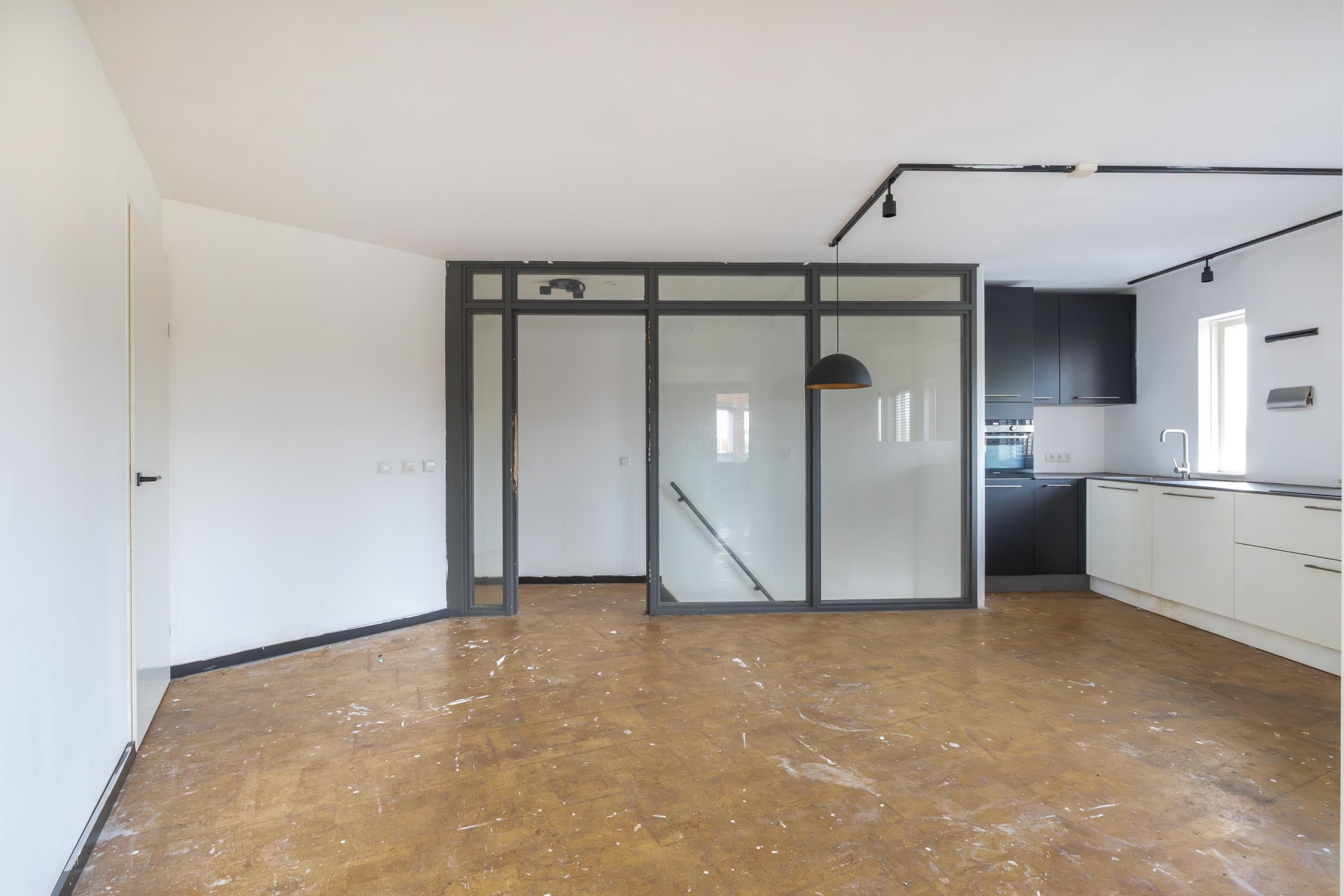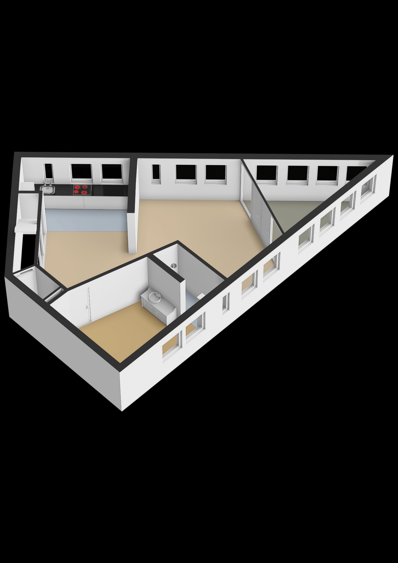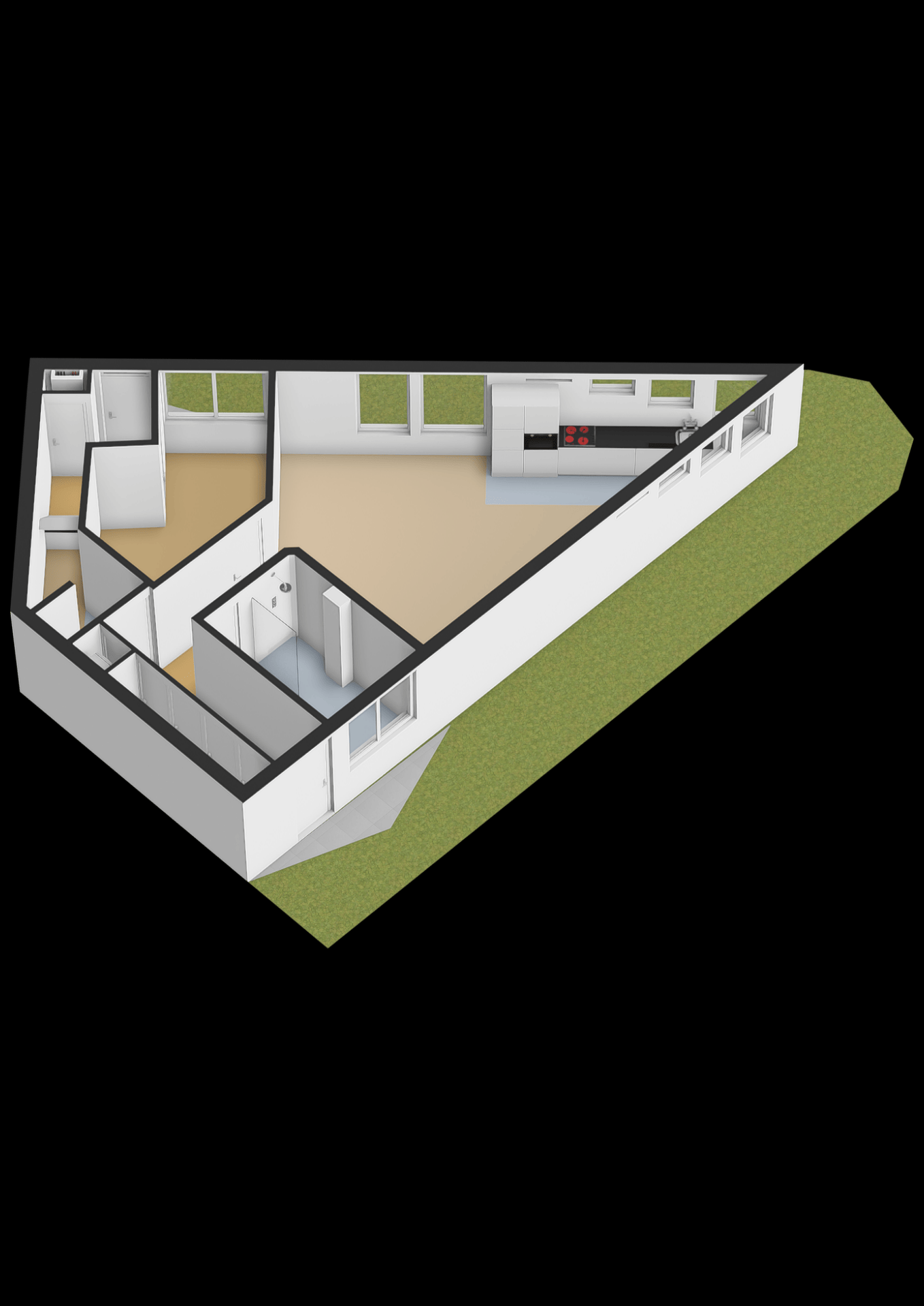 Grenzend hieraan bevindt zich de toiletruimte met hangend closet en wasmachineaansluiting. Tegenover de toiletruimte vindt u de badkamer. Deze volledig betegelde badkamer is uitgevoerd met een antraciet kleurige tegel en is voorzien van een bijzonder riante inloopdouche en een eigen wastafelmeubel. Verder de hal in gelopen vindt u de toegang tot de slaapkamer. Aan de achterzijde van de woning bevindt zich de bijzonder ruime, maar bovenal speelse woonkamer. Tevens bevindt zich hier de open keuken. Deze open keuken is uitgevoerd met een witte kleurstelling en beschikt over diverse Inbouwapparatuur uur te weten; koel/vries combinatie, combi magnetron, 4-pits inductie kookplaat, vaatwasser en rvs spoelbak.