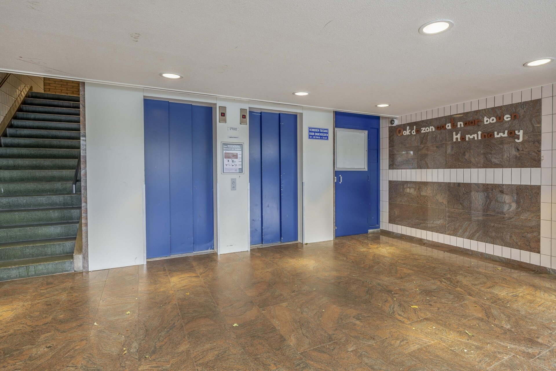 Op de begane grond is een centrale hal met bellentableau. Middels een afgesloten hal is de berging toegankelijk. Met de lift of het trappenhuis bereik je de diverse verdiepingen. Het appartementencomplex heeft een verzorgde uitstraling.