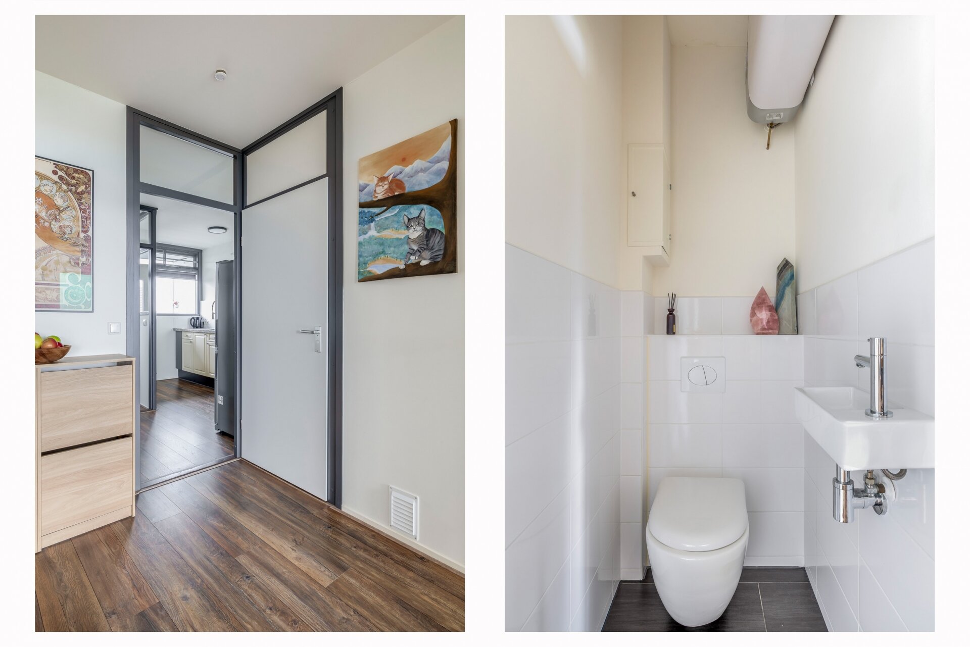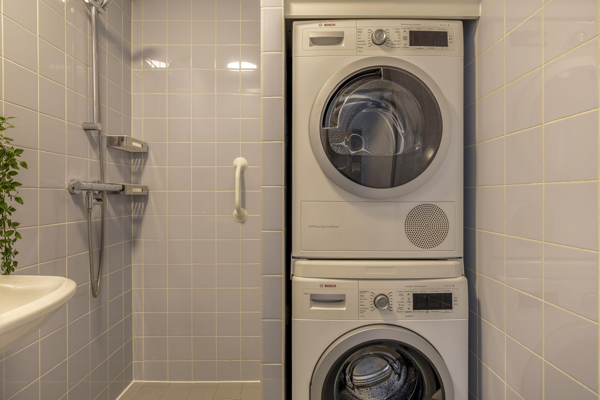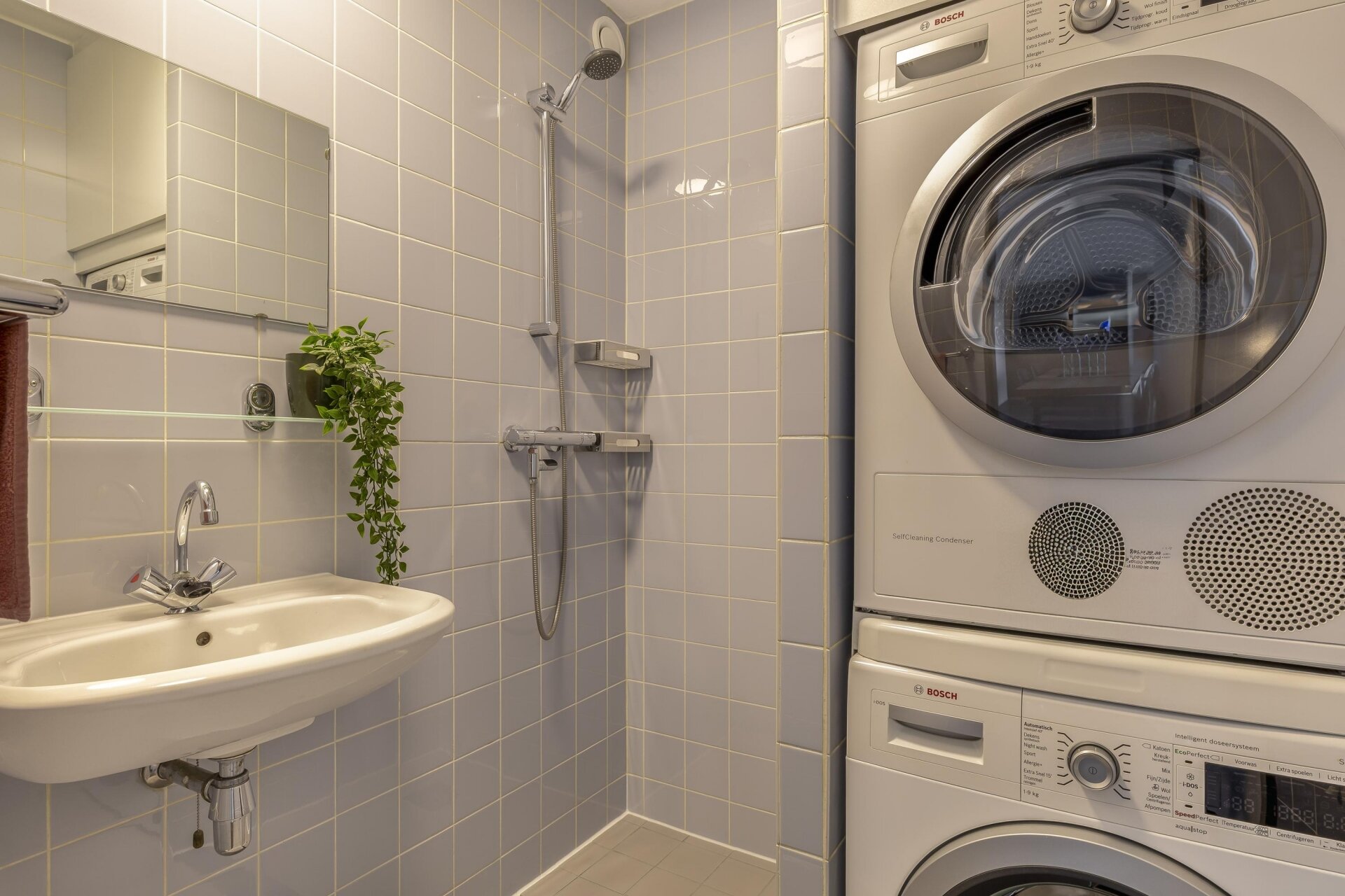Vanuit de woonkamer zijn de 3 slaapkamers, de badkamer en het toilet toegankelijk. De slaapkamers hebben een oppervlakte van circa 13, 10 en 7 m². De inpandige badkamer is volledig betegeld en is voorzien van een douche, wastafel en de aansluiting voor de wasmachine en droger. Het toilet bevind zich separaat naast de badkamer en is uitgerust met een hangend toilet en fonteintje. Tevens is hier ook de elektrische boiler (50L, eigendom uit 2025) geplaatst. Het gehele appartement, m.u.v. de natte ruimtes, zijn voorzien van een fraaie laminaatvloer en een verlaagd plafond met spots.