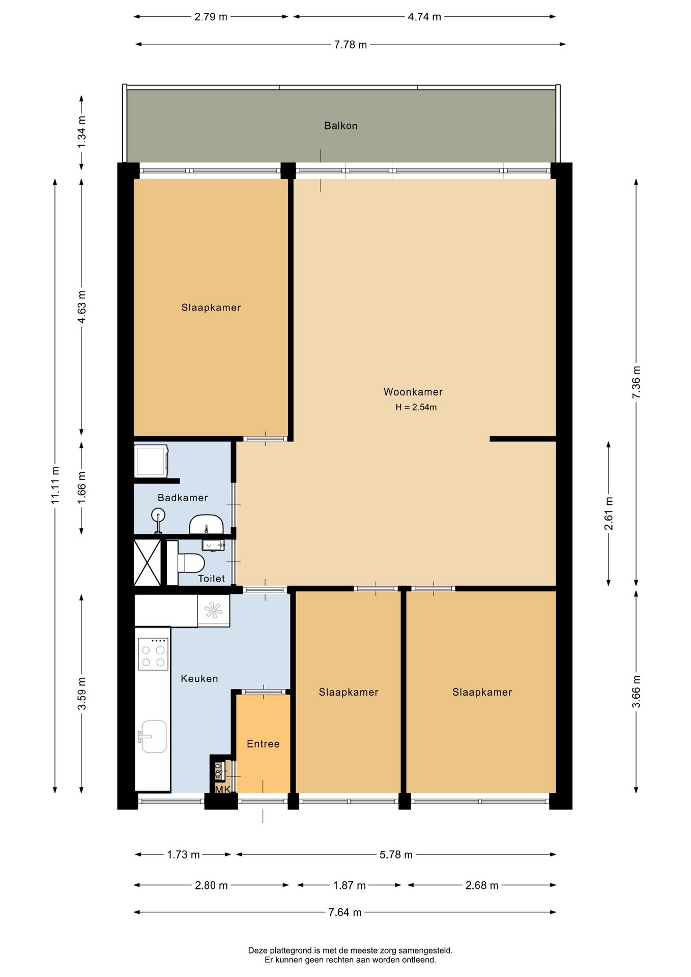 “Deze informatie is door ons met de nodige zorgvuldigheid samengesteld. Onzerzijds wordt echter geen enkele aansprakelijkheid aanvaard voor enige onvolledigheid, onjuistheid of anderszins, dan wel de gevolgen daarvan. Alle opgegeven maten en oppervlakten zijn indicatief.”