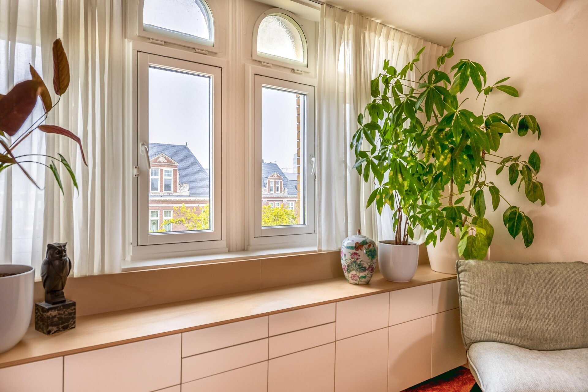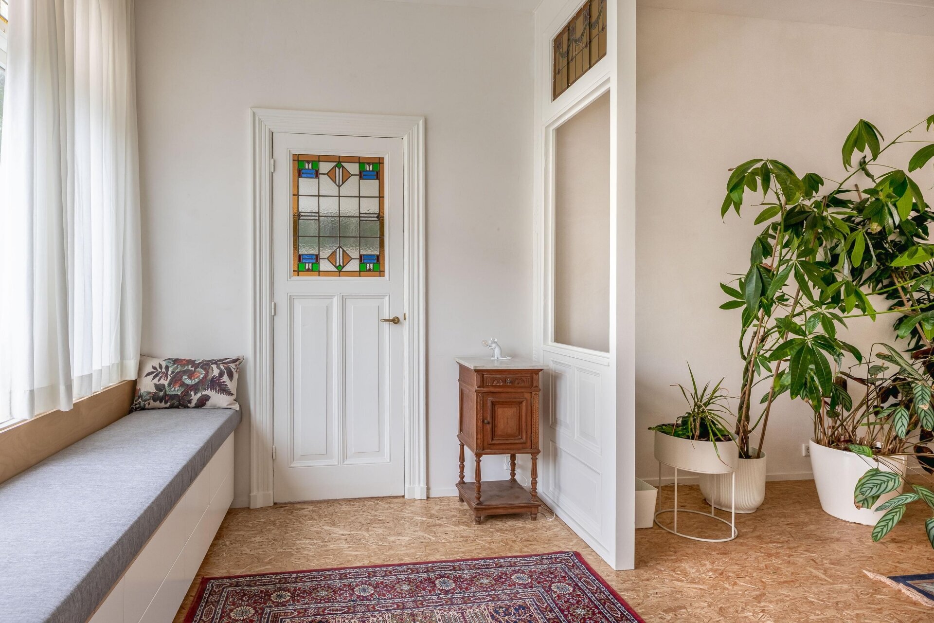 De woning is met veel liefde en visie verbouwd onder leiding van de huidige eigenaresse, die zelf architect is. Originele elementen zoals glas-in-loodramen, paneeldeuren en plafondornamenten zijn behouden gebleven en vormen een prachtig contrast met de moderne afwerking, slimme maatwerkkasten en open ruimtes.