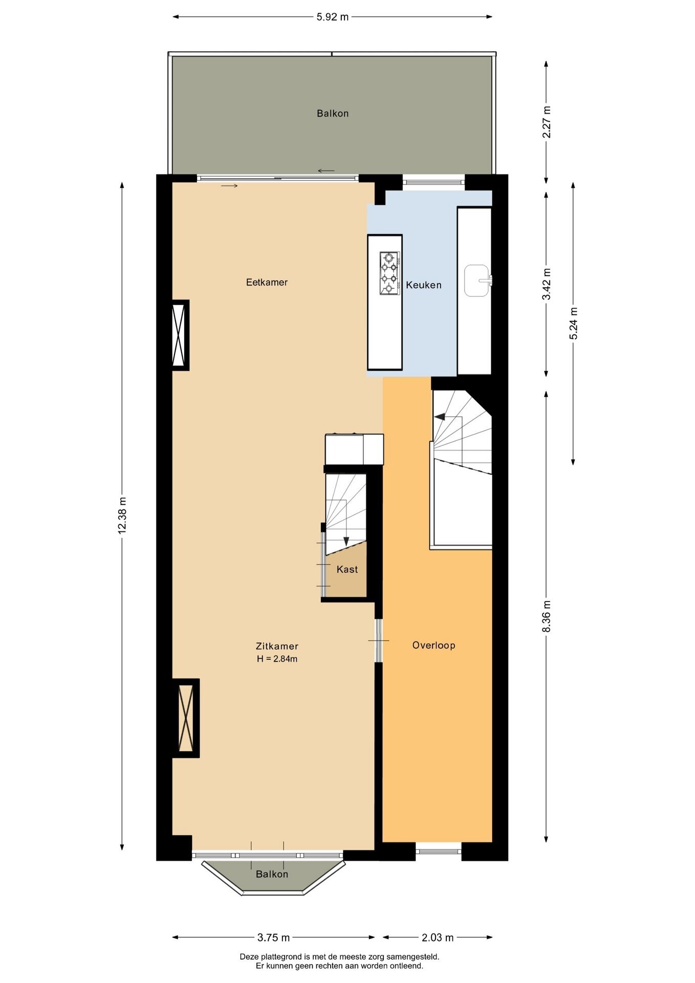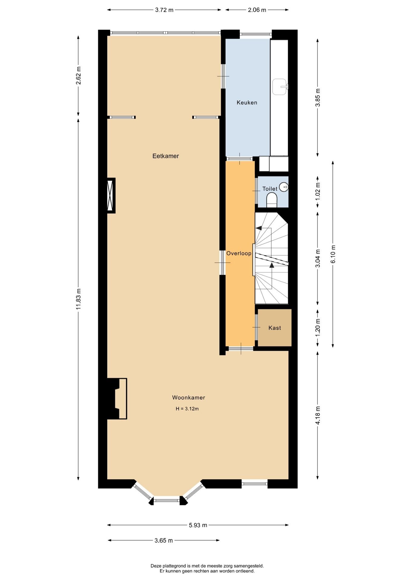“Deze informatie is door ons met de nodige zorgvuldigheid samengesteld. Onzerzijds wordt echter geen enkele aansprakelijkheid aanvaard voor enige onvolledigheid, onjuistheid of anderszins, dan wel de gevolgen daarvan. Alle opgegeven maten en oppervlakten zijn indicatief.”
