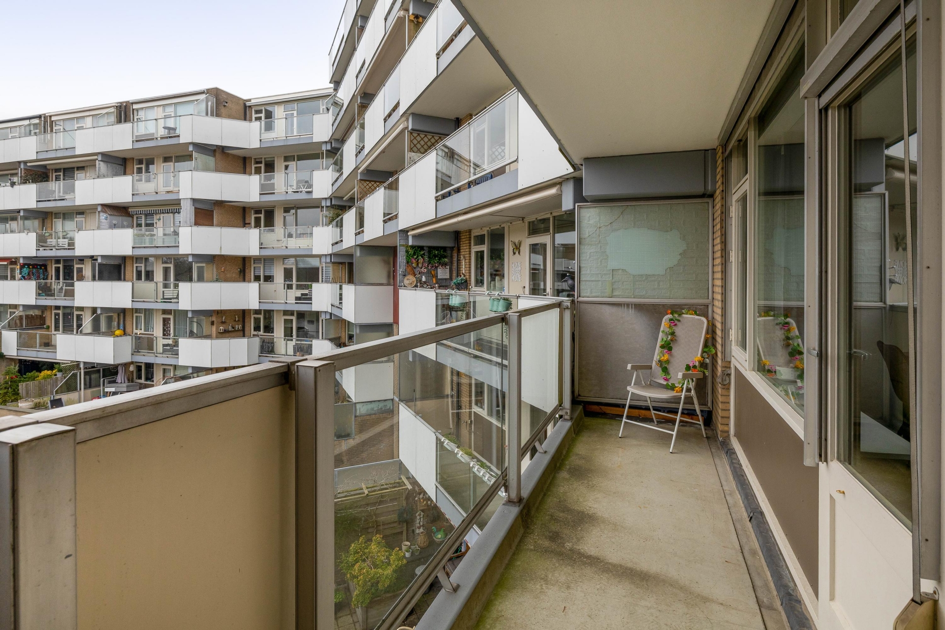Het uitzicht maakt het totaalplaatje compleet! Het balkon ligt over de volledige breedte van het appartement en biedt een geweldig vrij uitzicht. Tevens heeft deze ook nog eens een gunstige ligging, namelijk op het zuidwesten. Dit maakt het mogelijk om lang van de zon te kunnen genieten. Liever genieten van de natuur? Vanaf het appartement loop je zo het Schollebos in!
