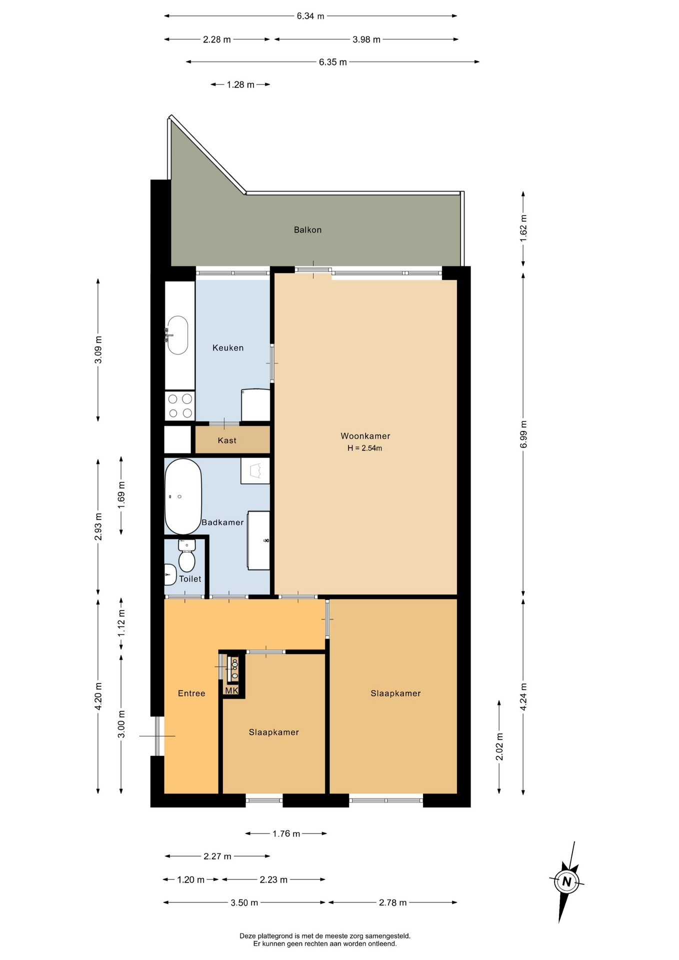 “Deze informatie is door ons met de nodige zorgvuldigheid samengesteld. Onzerzijds wordt echter geen enkele aansprakelijkheid aanvaard voor enige onvolledigheid, onjuistheid of anderszins, dan wel de gevolgen daarvan. Alle opgegeven maten en oppervlakten zijn indicatief.”