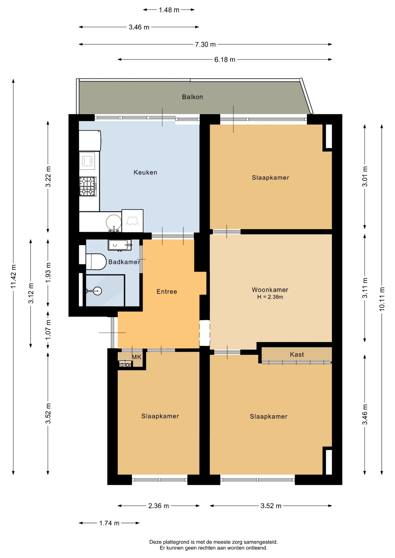 “Deze informatie is door ons met de nodige zorgvuldigheid samengesteld. Onzerzijds wordt echter geen enkele aansprakelijkheid aanvaard voor enige onvolledigheid, onjuistheid of anderszins, dan wel de gevolgen daarvan. Alle opgegeven maten en oppervlakten zijn indicatief.”