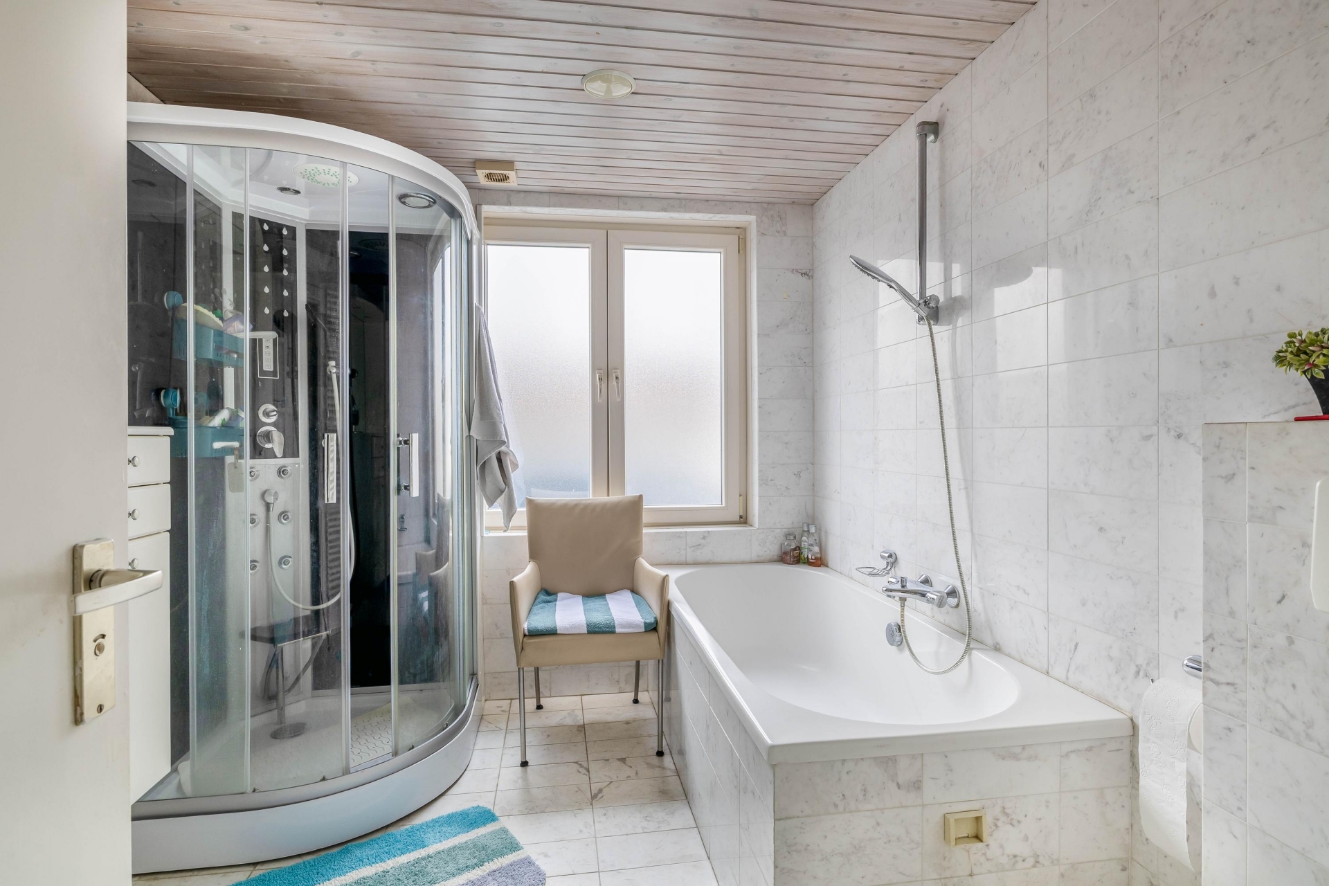 Op de eerste verdieping zijn twee slaapkamers en een ruime badkamer te vinden. De grootste slaapkamer ligt aan de achterzijde en geeft toegang tot een royaal balkon over de volle breedte van het huis. De tweede slaapkamer is aan de voorzijde gelegen en praktisch van formaat. Verder is er op deze verdieping nog een aparte wasruimte en een inbouwkast.