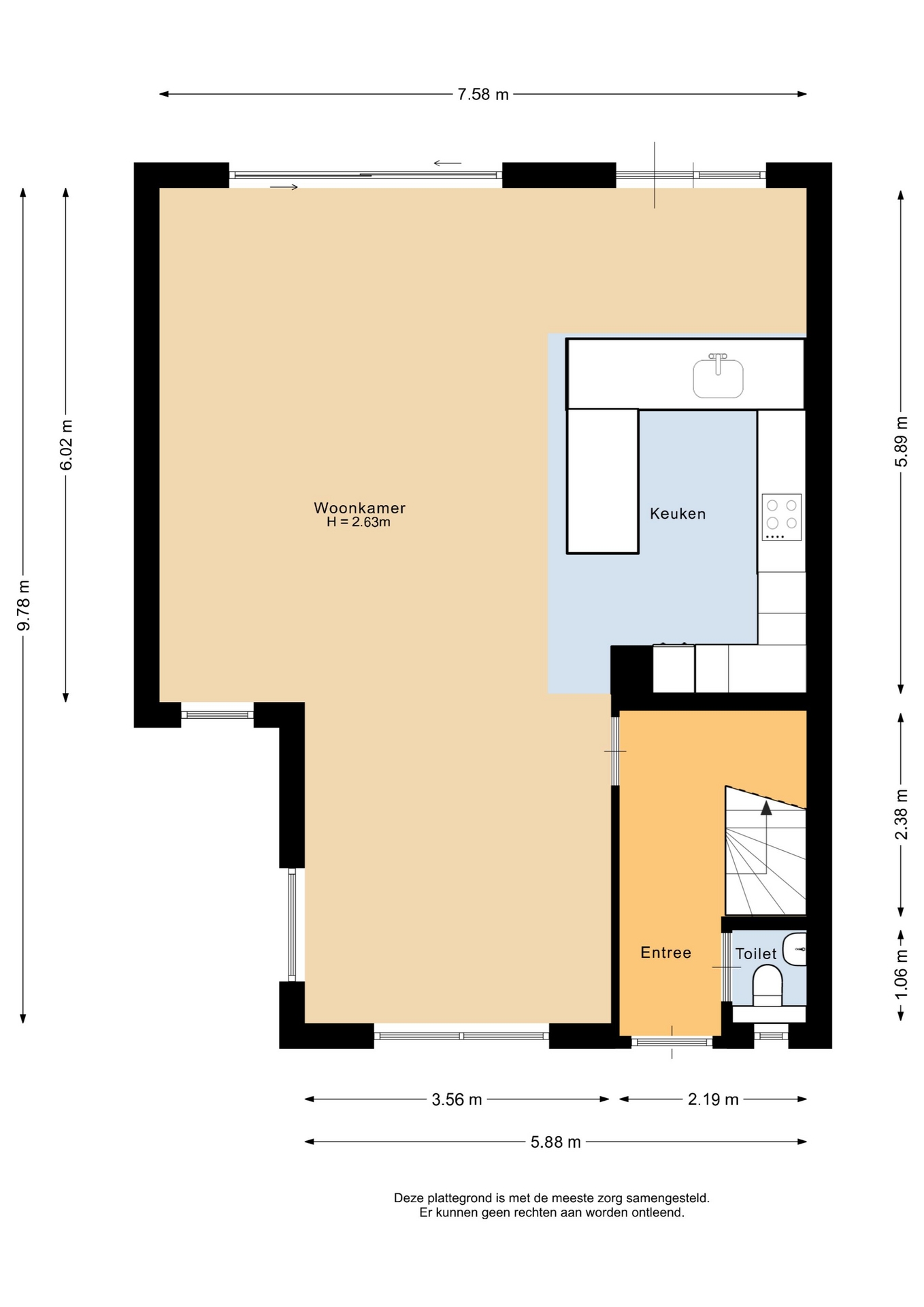 “Deze informatie is door ons met de nodige zorgvuldigheid samengesteld. Onzerzijds wordt echter geen enkele aansprakelijkheid aanvaard voor enige onvolledigheid, onjuistheid of anderszins, dan wel de gevolgen daarvan. Alle opgegeven maten en oppervlakten zijn indicatief.”